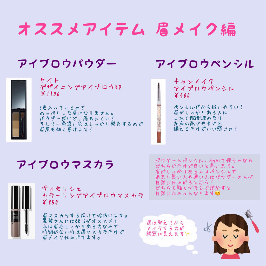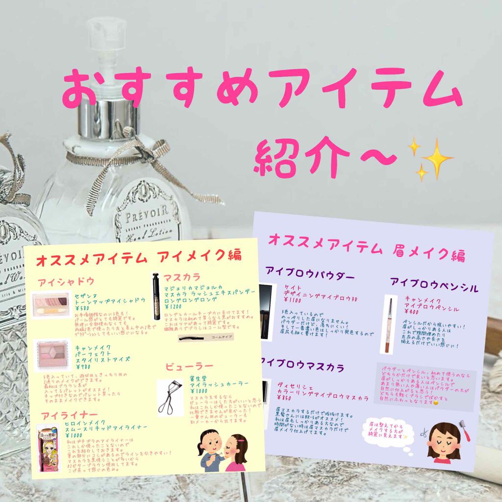 ★オススメ紹介★お久しぶりです!すずらんです(*´꒳`*)前回は初心者さん向けのベースメイクなどを紹介しました。今回は眉や目のポイントメイクをオススメしたいと思います!★アイメイク編画像2枚目参照◯アイシャドウ・セザンヌ/トーンアップアイシャ...