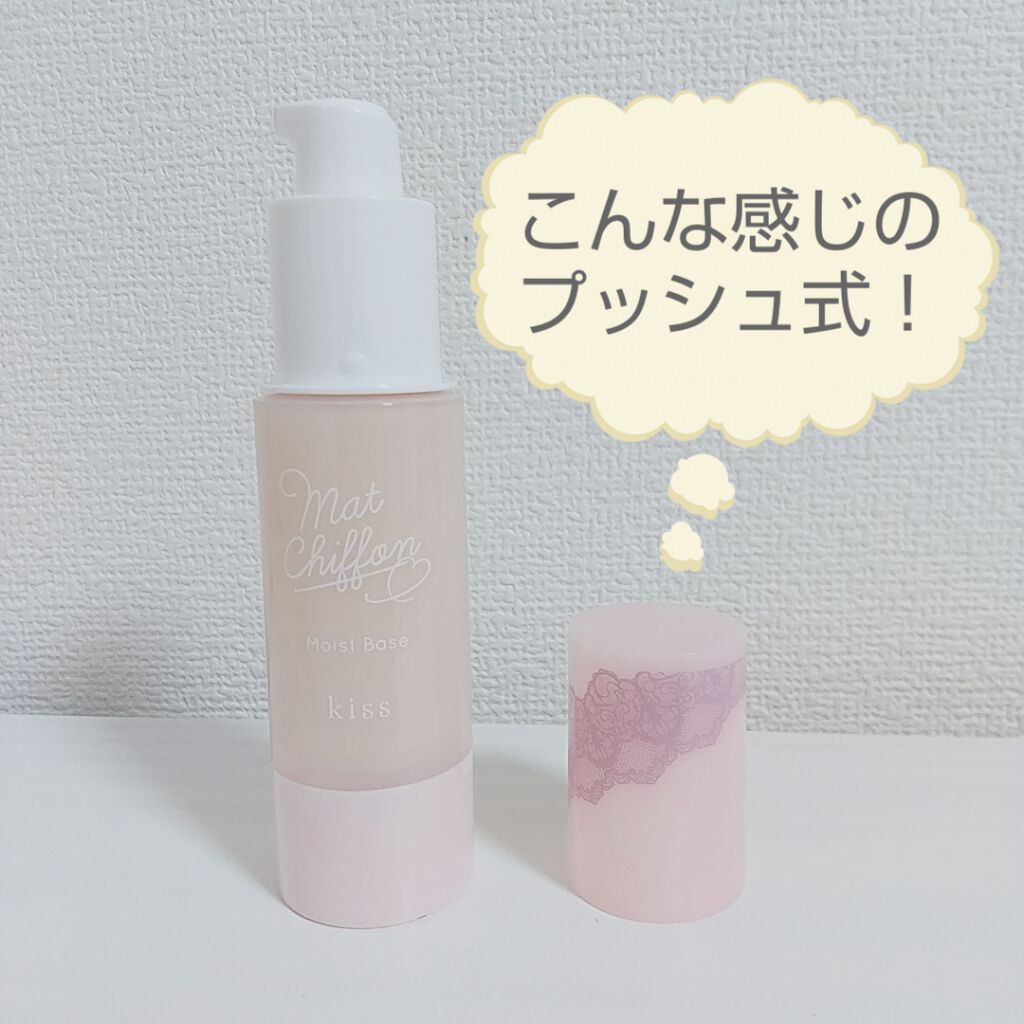 kiss キスマットシフォンUVモイストベース01ライトワントーン明るいナチュラルカラーSPF26/PA++真空タイプのプラスチック製ボトル(残量が減ると内底が上がってくるタイプ)手の甲に出した後傾けても垂れない少し固めのテクスチャ仕上がりは...