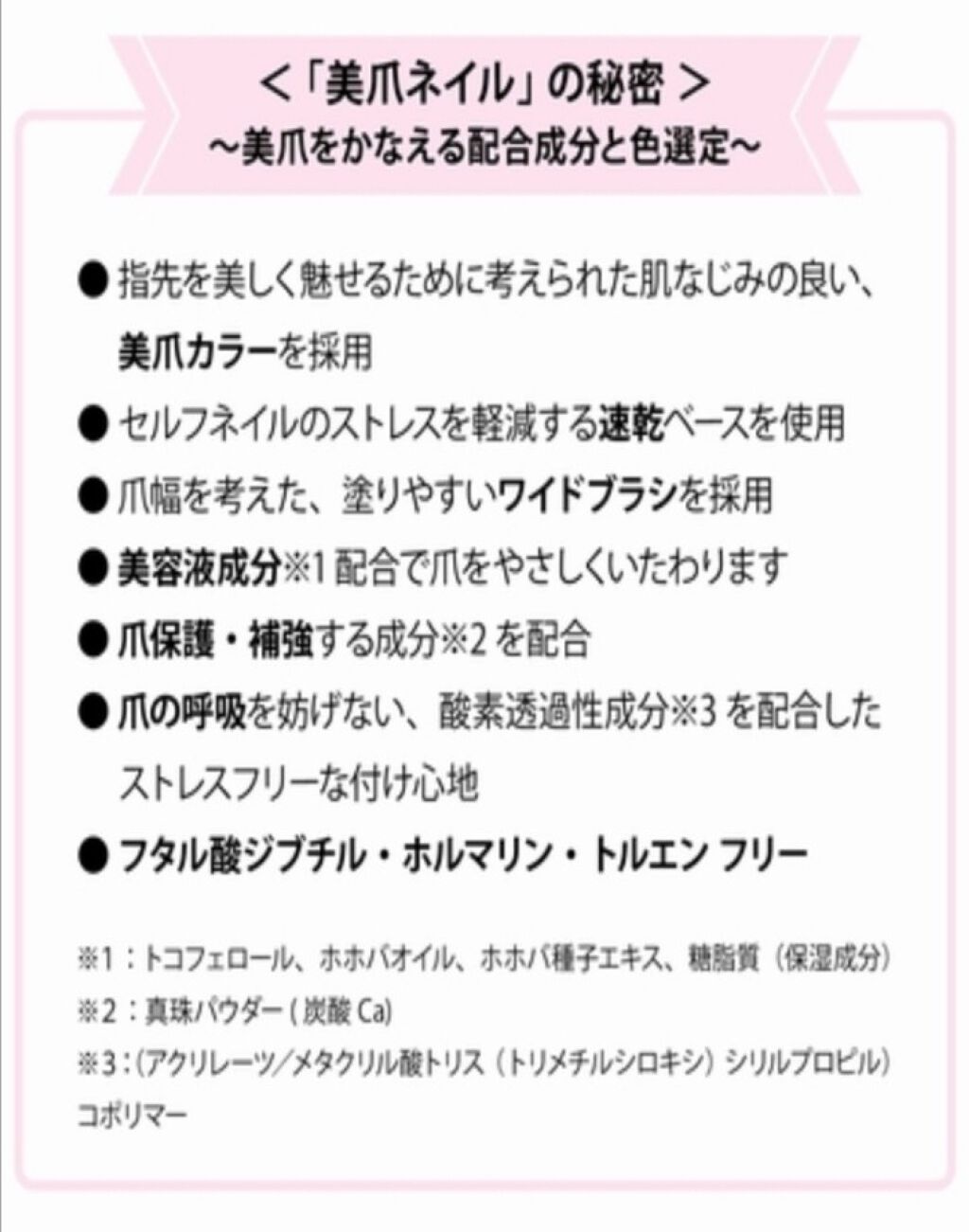 | マニキュアランキング第145位 | ひと塗りですっと肌に馴染 み、手指が美しく見えるよう計算されたペールブラウン。 | 詳細を見る |