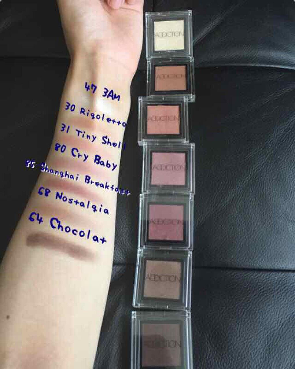 持ってるアディクションのザアイシャドウ全部スウォッチ★ブルベ夏ですが個人的にcrybabyシャンハイブレックファーストノスタルジアが使いやすいですヽ(・∀・)...