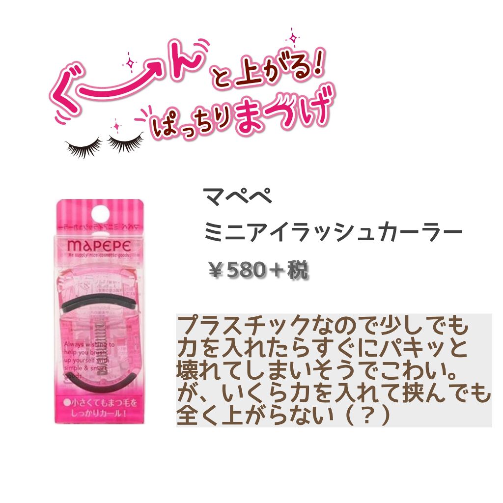 ♢マペペ・ミニアイラッシュカーラーこれはいつも私がポーチの中に入れているお気に入りのビューラーです!普通の大きさのビューラーは持ち運びには不便だったのでコンパクトなこのビューラーを購入しました!はじめの頃はこんなのでまつ毛が上がるの?!など...
