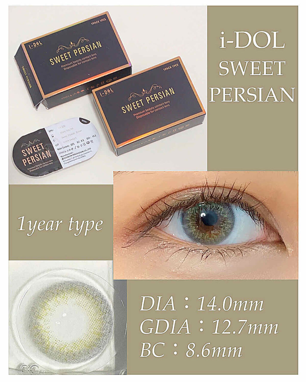 SWEETPERSIAN@mitunolens様の人気のIDOLレンズの新色になります!凄く可愛い…♡派手すぎないハーフカラコンをお探しの方は是非★SWEETPERSIANBROWN価格 2312円B.C8.6直...