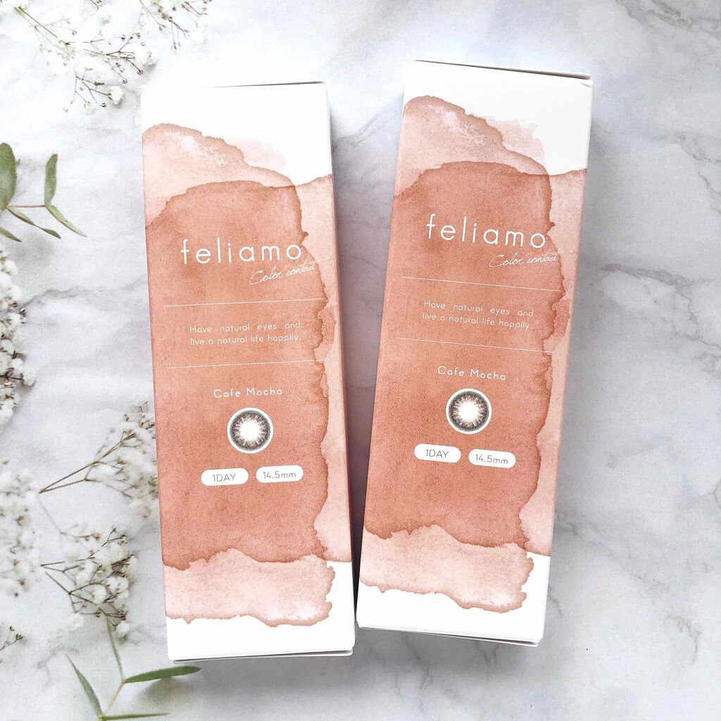 - ※2025年6月以降、商品パッケージ裏面・側面の一部表記を順次変更いたします。尚、これにかかる商品の交換・返品は承っておりません。 どんな瞬間にも溶け込む誰からも愛される瞳へ feliamoの由来は felice amore~幸せな愛~ 瞳から愛されオーラを放つ好印象レンズで女性らしさと品を演出。 オンも、オフも、特別な日も。 どんな場面にも溶け込むレンズラインナップで誰からも愛される瞳に。 UV CUT Feature1 肌や瞳に有害といわれ、白内障などの眼病を引き起こす危険性のある紫外線を99%カットします。(UV-A波75%、UV-B波99%カット) イオン性 Feature1 水分を多く含み酸素を通しやすいため瞳にやさしい使い心地で、快適な装用感です。 高含水 Feature1 水分が多く含むやわらかい素材で、快適なつけ心地です。 レンズ構造 Feature1 まぶた側に着色剤を内包しているため、角膜に色素が触れることがない構造を採用しています。 レンズ形状 Feature1 フチを丸みのある形状にすることで自然な装用感を実現しました。 ※装用感には個人差があります。 カラーコンタクトレンズの不適正使用による眼障害の危険性等などがあります。 ●コンタクトレンズは高度管理医療機器です。不十分な洗浄・消毒など不適切なケアや、長時間・交換期間を超えた装用により、アレルギー性結膜炎、角膜感染症、角膜潰瘍等の重篤な眼障害が発生する危険性があります ●ご使用前に取扱説明書を確認してください 使用上の留意事項 ●眼科医院等を受診してからお求めください ●眼に異常を感じたら直ちにレンズ使用を中止し、お近くの眼科等で診察を受けてください ●医師の指示にしたがってご使用ください ●コンタクトレンズを装用する場合、自覚症状がなくても、眼科医院等での定期検査を受けてください ●レンズに不具合がある場合は使用しないでください