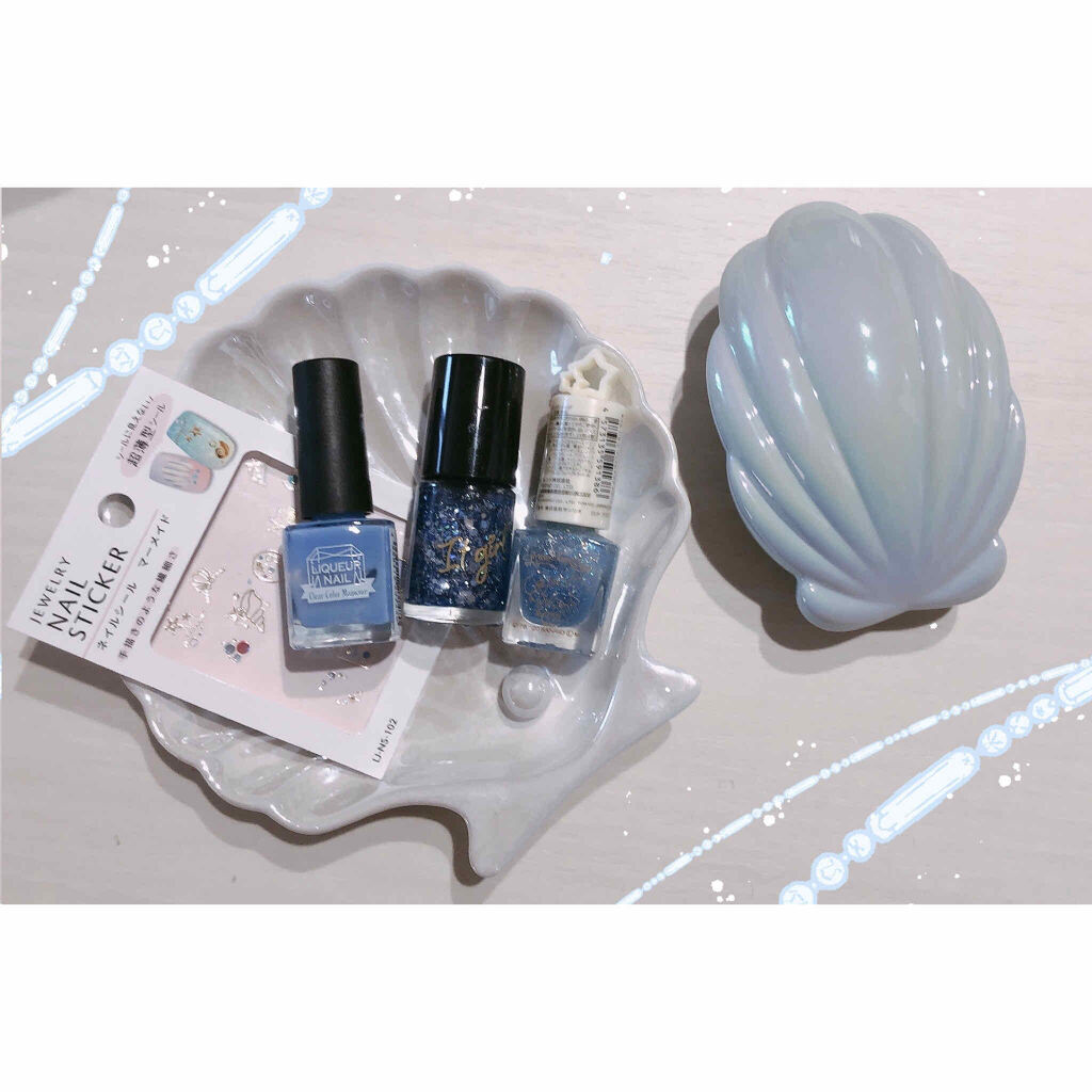 ええーすっっごいかわいい😍😍 寒色系のネイルあんまりやったことないので挑戦してみます!!ネイルってプチプラなのに高見えするし、オシャレなのでめっちゃ好きです!笑 写真にある、シェル型のトレーってどこで買われましたか?
