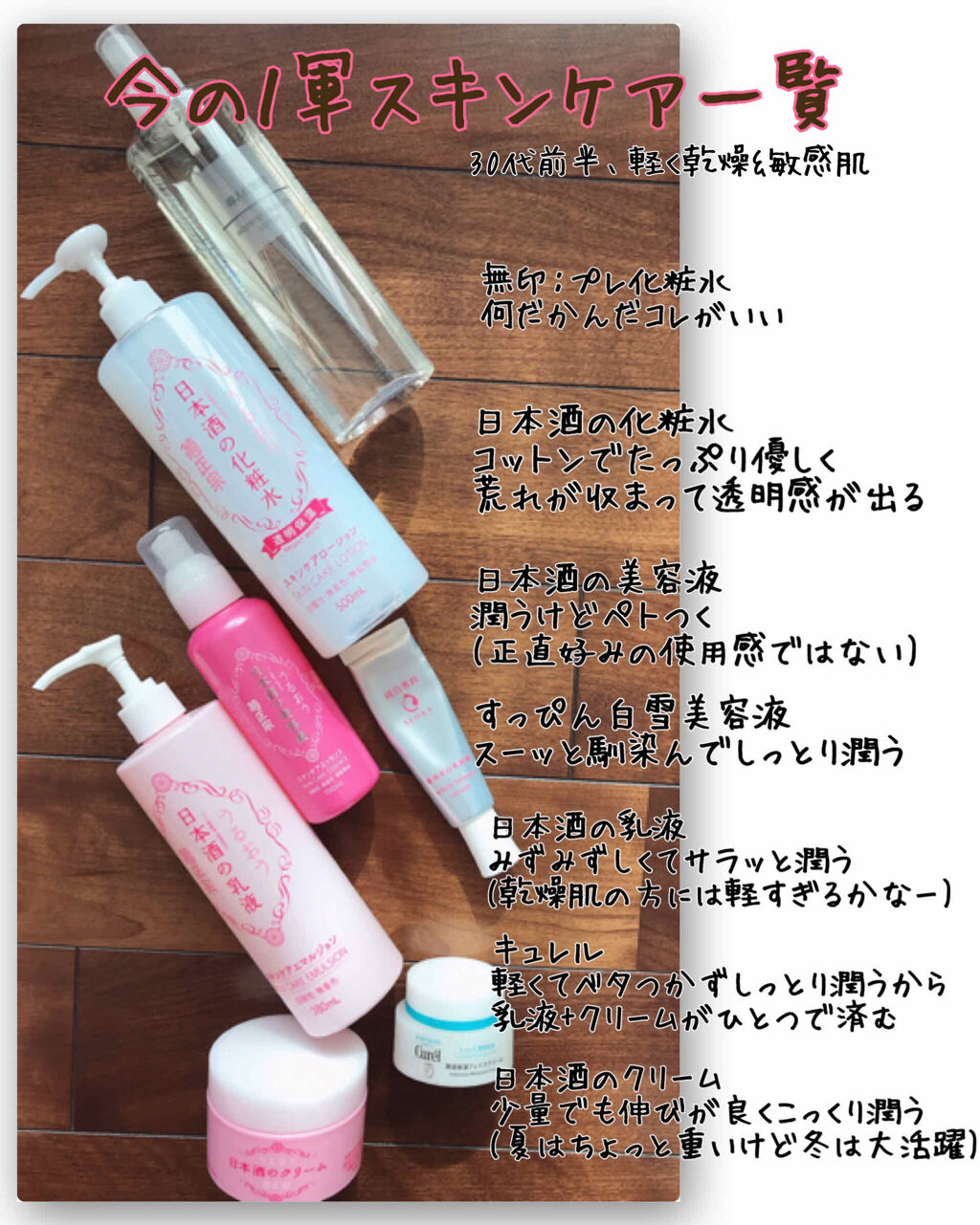 日本酒のチカラでしっとり肌に✨こんにちは!PINOです🐣今回は菊正宗日本酒の化粧水透明保湿をご紹介します!★実際の色味に寄せるため色補正しています〈テクスチャー〉水みたいなシャバシャバ系のテクスチャー〈仕上がり〉さっぱりしていてベタベタしない...