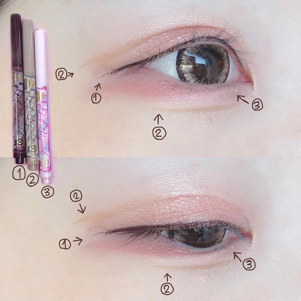 特徴的なのが全13色ある中で、アイライナー、シャドウライナー、コンシーラーライナーとカテゴライズされています。 シャドウカラーは涙袋のハイライトカラーにぴったりのパール入りのツヤっとしたカラー。 これがメインと言っても良いようなコンシーラーカラーは、涙袋だけじゃなく小さいシミや肌のアラをピンポイントで隠すのにも使えます。 そして何と言ってもこのアイライナーたちは先端が2mmほどの細さなのでとっても使いやすい✨
