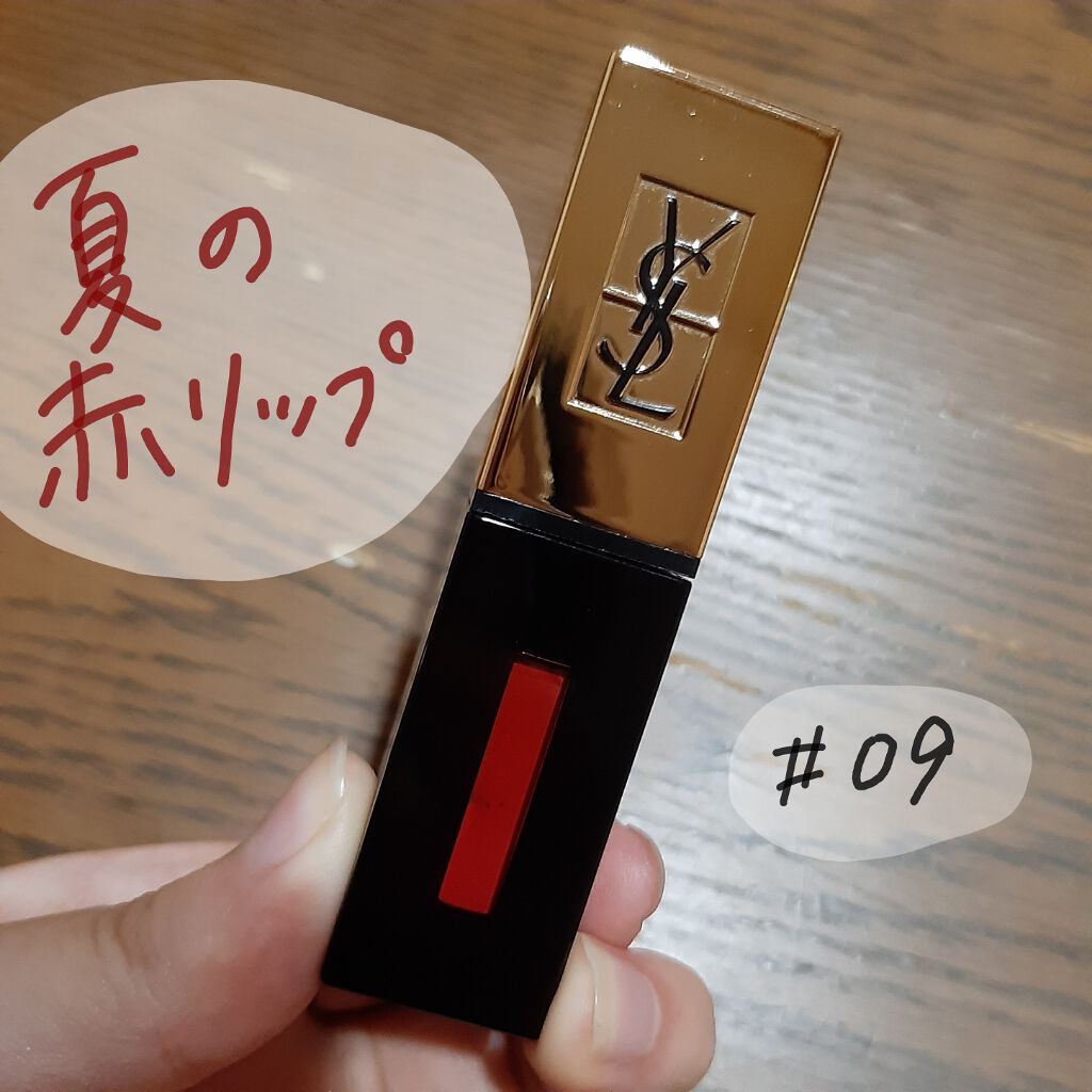 💄YSLルージュピュールクチュールヴェルニ09ルージュラック◎色味は明るめの朱赤唇にのせると若干オレンジっぽくも見えますが、ブライトレッド!という感じで可愛いです。思っていたより鮮やかで元気な色でした。韓国メイクっぽくも使えると思います。発色...
