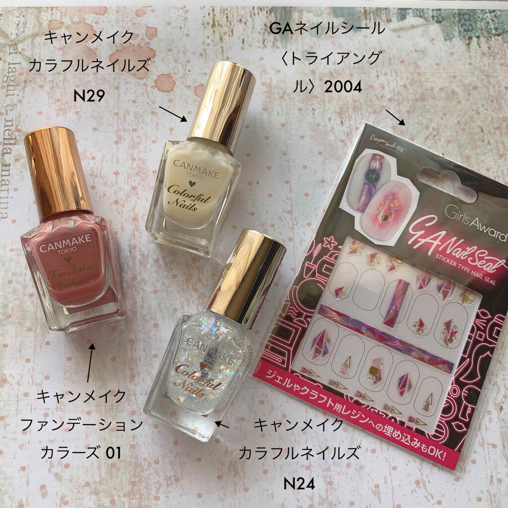 【キャンメイクの限定を使った夏に映えるキラキラなネイル💅🏻】★キャンメイク カラフルネイルズN41☆キャンメイク カラフルネイルズN24①ベースコートを塗ります。お好きなベースコートを塗り、乾かします。②キャンメイクのN41を2度塗りします。...