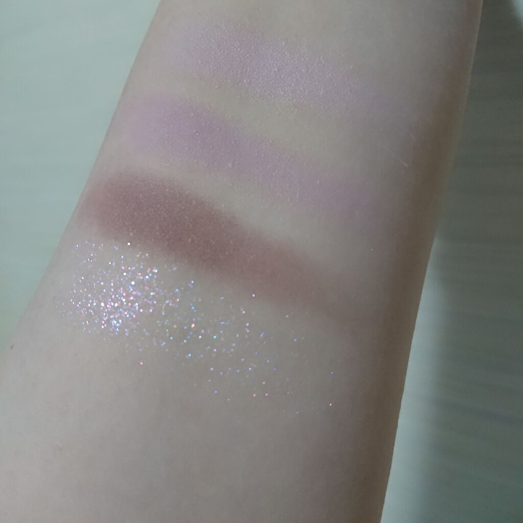 やっぱこのアイシャドウもナチュラルに盛れるからほんと好きだわ〜 ナチュラル発色だし、ほわっと柔らかい感じに仕上がるから好き!粉質もしっとり。 1色だけラメだけど、このラメもまた可愛いんだ✨ 繊細な感じのキラッキラ感で👍
