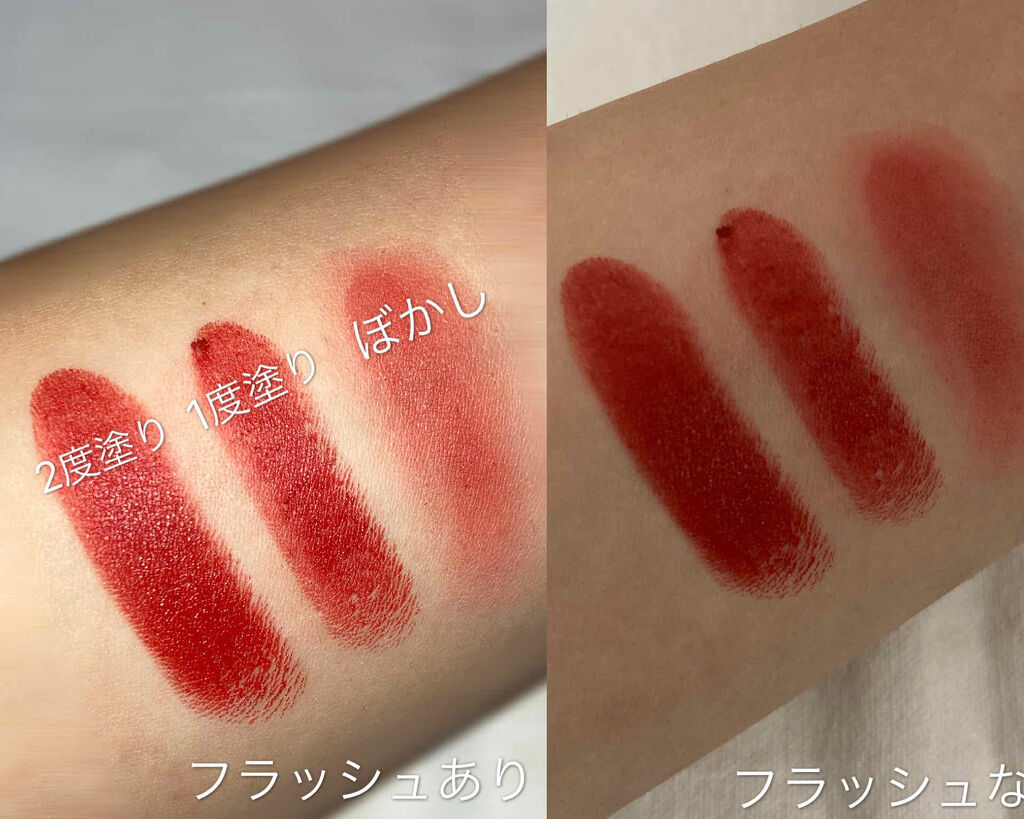 M·A·CPOWDERKISSLIPSTICKデボーテッドトゥチリ税込¥3,300つけ心地★★★★☆軽いパウダリーテクスチャー塗る前に保湿をしていないと縦じわが目立つ発色★★★★★ブラウンがかったオレンジレッド(マット)艶のない発色の高い色合...