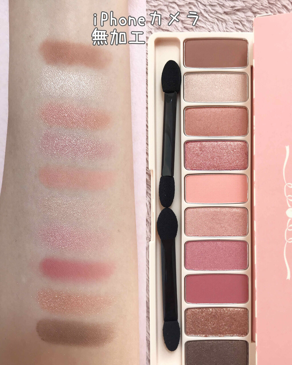 - 肌なじみの良い、鮮やかな発色で目元を華やかに彩る捨て色なしの10色アイシャドウパレット 異なる3種のテクスチャーを自由に組み合わせて、グラデーションも思いのままに。 NEW 2023.4 ・肌トーンにあう配色を詰め込んだトレンドカラー 肌トーンに合わせて、自分に似合うトレンドカラーが楽しめる♡ パーソナルカラー×トレンドカラーの掛け合わせパレットで、デイリーメイクもスペシャルメイクも気分にあわせてなりたい自分に! ・むにゅっとジェル質感ラメで高密着、煌めく目元 パレットの中でもポイントとなる大きめ粒子のラメは、ジェルのような新質感で落ちにくく肌にぴったりと密着します。キラキラとした目元をキープします。 ・使うカラーは大きめに!リアル捨て色なしパレット ベースやラメのよく使うカラーと締め色や濃い色等の減りが少ないカラーを異なるサイズで詰め込んだ、リアル捨て色なしパレット! <使用方法> 付属のデュアルシャドウブラシでベースカラーをまぶた全体に塗り広げます。細いブラシでグラデーションや目尻、アイライン、涙袋などのポイントカラーをのせて仕上げます。