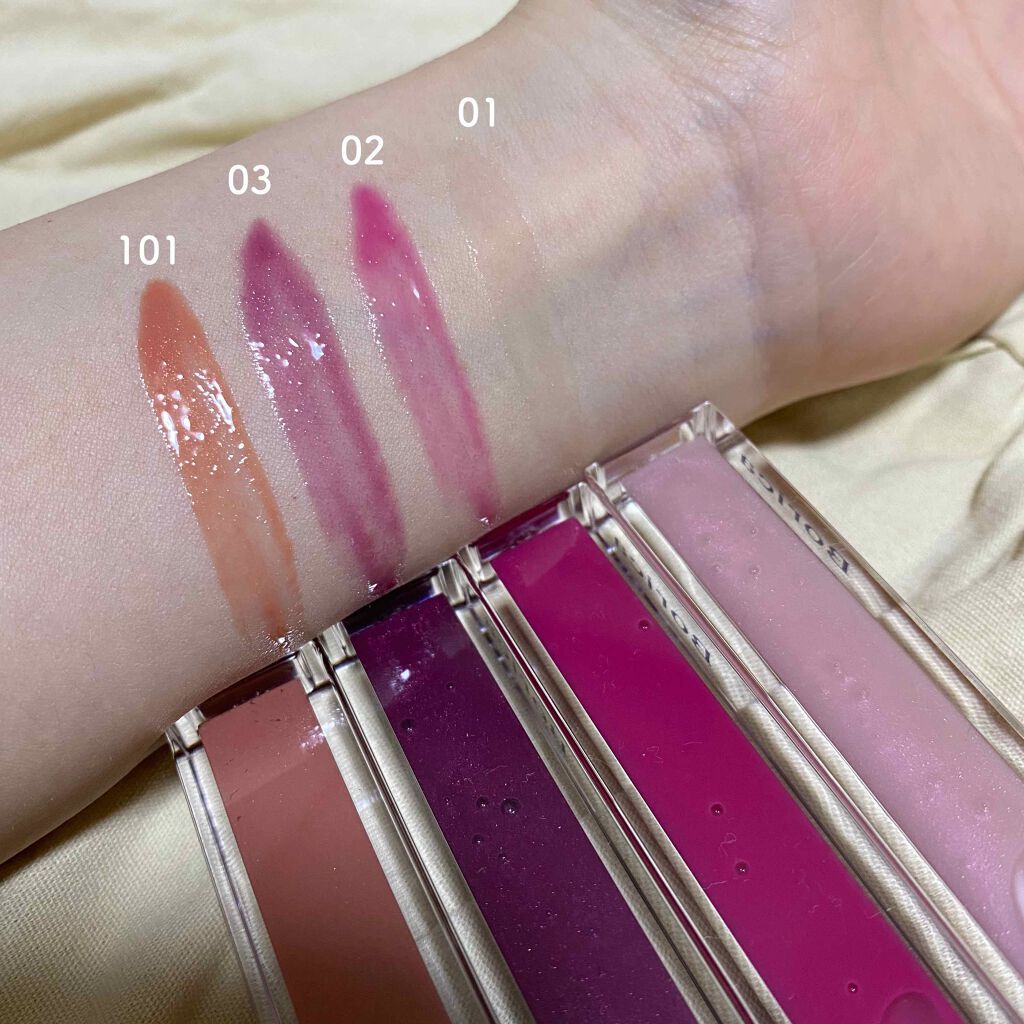- <01 ピンク> ポリブテン、リンゴ酸ジイソステアリル、トリエチルヘキサノイン、トリイソステアリン酸ポリグリセリル-2、(パルミチン酸/エチルヘキサン酸)デキストリン、(ジイソステアリン酸/水添ロジン酸)グリセリル、ラウロイルグルタミン酸ジ(フィトステリル/オクチルドデシル)、シリカ、フェノキシエタノール、エチルヘキシルグリセリン、メントール、ジメチコン、ジイソステアリン酸グリセリル、トコフェロール、香料、バニリルブチル、シメチコン、セラミド3、水、BG、ペンチレングリコール、エンテロコッカスフェカリス、グルコシルヘスペリジン、水添ポリイソブテン、グリセリン、アクリル酸アルキルコポリマー、PVP、リンゴ果実培養細胞エキス、ヒアルロン酸クロスポリマーNa、キサンタンガム、加水分解コラーゲン、(VP/ポリカルバミルポリグリコール)エステル、ポリ(トリペプチド-6)、塩化Na、加水分解ゴマタンパクPGプロピルメチルシランジオール、レシチン、アセチルヘキサペプチド-8、ハナスゲ根エキス、フラーレン、酸化チタン、酸化鉄、マイカ、硫酸Ba、ロジン、水酸化Al、赤202、赤218、黄4、青1 <02 ラズベリーピンク> ポリブテン、リンゴ酸ジイソステアリル、トリエチルヘキサノイン、トリイソステアリン酸ポリグリセリル-2、(パルミチン酸/エチルヘキサン酸)デキストリン、(ジイソステアリン酸/水添ロジン酸)グリセリル、ラウロイルグルタミン酸ジ(フィトステリル/オクチルドデシル)、シリカ、フェノキシエタノール、エチルヘキシルグリセリン、メントール、ジメチコン、ジイソステアリン酸グリセリル、トコフェロール、香料、バニリルブチル、シメチコン、セラミド3、水、BG、ペンチレングリコール、エンテロコッカスフェカリス、グルコシルヘスペリジン、水添ポリイソブテン、グリセリン、アクリル酸アルキルコポリマー、PVP、リンゴ果実培養細胞エキス、ヒアルロン酸クロスポリマーNa、キサンタンガム、加水分解コラーゲン、(VP/ポリカルバミルポリグリコール)エステル、ポリ(トリペプチド-6)、塩化Na、加水分解ゴマタンパクPGプロピルメチルシランジオール、レシチン、アセチルヘキサペプチド-8、ハナスゲ根エキス、フラーレン、酸化チタン、酸化鉄、マイカ、硫酸Ba、ロジン、水酸化Al、赤202、赤218、黄4、青1 <101 ローズピンク> ポリブテン、リンゴ酸ジイソステアリル、トリエチルヘキサノイン、トリイソステアリン酸ポリグリセリル-2、(パルミチン酸/エチルヘキサン酸)デキストリン、(ジイソステアリン酸/水添ロジン酸)グリセリル、ラウロイルグルタミン酸ジ(フィトステリル/オクチルドデシル)、シリカ、フェノキシエタノール、エチルヘキシルグリセリン、メントール、ジメチコン、ジイソステアリン酸グリセリル、トコフェロール、香料、バニリルブチル、シメチコン、セラミド3、水、BG、ペンチレングリコール、エンテロコッカスフェカリス、グルコシルヘスペリジン、水添ポリイソブテン、グリセリン、アクリル酸アルキルコポリマー、PVP、リンゴ果実培養細胞エキス、ヒアルロン酸クロスポリマーNa、キサンタンガム、加水分解コラーゲン、(VP/ポリカルバミルポリグリコール)エステル、ポリ(トリペプチド-6)、塩化Na、加水分解ゴマタンパクPGプロピルメチルシランジオール、レシチン、アセチルヘキサペプチド-8、ハナスゲ根エキス、フラーレン、酸化チタン、酸化鉄、マイカ、硫酸Ba、ロジン、水酸化Al、赤202、赤218、黄4、青1 <201 フィグピンク> ポリブテン、リンゴ酸ジイソステアリル、トリエチルヘキサノイン、トリイソステアリン酸ポリグリセリル-2、(ジイソステアリン酸/水添ロジン酸)グリセリル、(パルミチン酸/エチルヘキサン酸)デキストリン、ラウロイルグルタミン酸ジ(フィトステリル/オクチルドデシル)、シリカ、フェノキシエタノール、エチルヘキシルグリセリン、メントール、ジメチコン、ジイソステアリン酸グリセリル、トコフェロール、香料、バニリルブチル、シメチコン、セラミド3、水、BG、ペンチレングリコール、エンテロコッカスフェカリス、グルコシルヘスペリジン、水添ポリイソブテン、グリセリン、アクリレーツコポリマー、PVP、リンゴ果実培養細胞エキス、ヒアルロン酸クロスポリマーNa、キサンタンガム、加水分解コラーゲン、(VP/ポリカルバミルポリグリコール)エステル、ポリ(トリペプチド-6)、加水分解ゴマタンパクPGプロピルメチルシランジオール、レシチン、アセチルヘキサペプチド-8、ハナスゲ根エキス、フラーレン、酸化チタン、酸化鉄、マイカ、水酸化Al、硫酸Ba、ロジン、赤202、赤218、青1 <202 チェリーレッド> ポリブテン、リンゴ酸ジイソステアリル、トリエチルヘキサノイン、トリイソステアリン酸ポリグリセリル-2、(ジイソステアリン酸/水添ロジン酸)グリセリル、(パルミチン酸/エチルヘキサン酸)デキストリン、ラウロイルグルタミン酸ジ(フィトステリル/オクチルドデシル)、シリカ、フェノキシエタノール、エチル