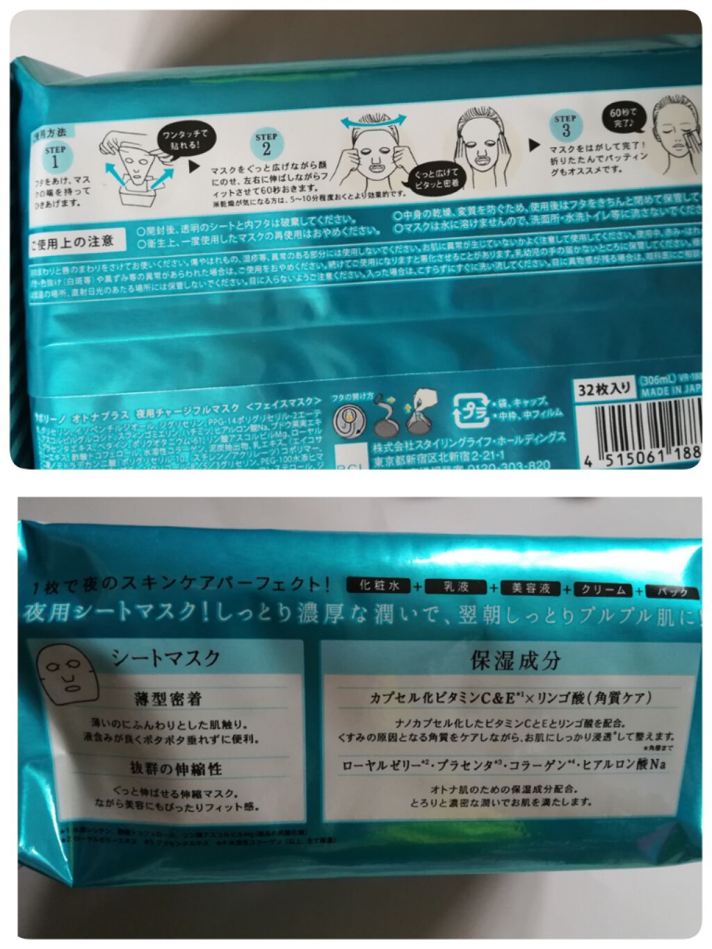 ※旧品※2025年使用品シートマスク・商品名サボリーノオトナプラス 夜用チャージフルマスクホワイト5枚入り49mL 夜用チャージフルマスク5枚入り48mL・値段定価495円(250円で購入)・購入場所COOP・評価★★☆☆☆アルコール、メント...