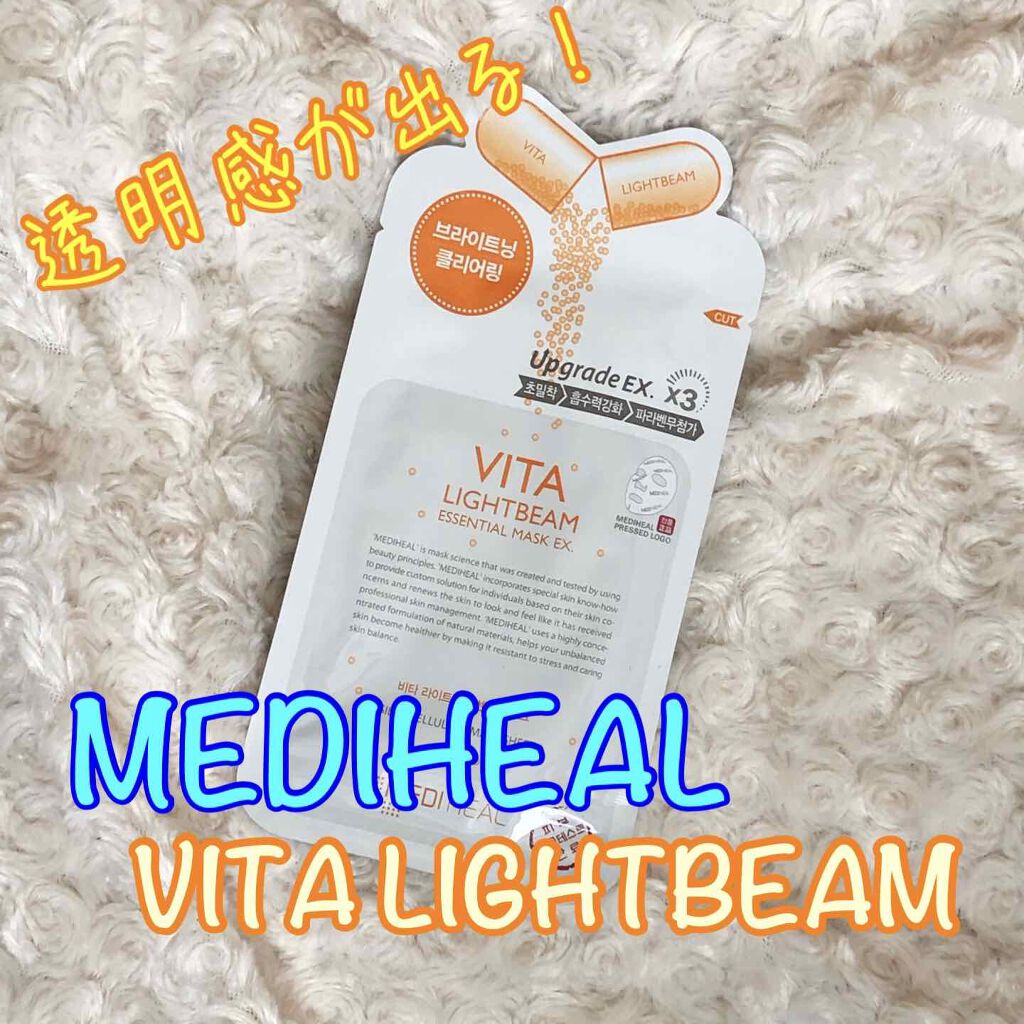 今日のパックはMEDIHEALビタ ライトビーム エッセンシャル マスクEXです!キメとツヤに特化したマスクみたいで美白効果もあって期待大❤️シートは厚めで美容液がたっぷり含まれて貼りやすいんですが、ちょっと大きめでした💧香りは香水みたいなフ...