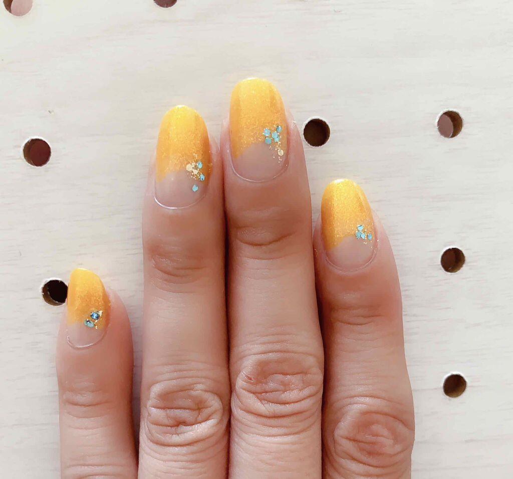 元気カラー( *´꒳`*)キュン♥ イエローカラーとラメ可愛い❤︎*.(๓´͈ ˘ `͈๓).*❤︎ もう今日で8月終わりなんですよね~ まだまだ暑いですよね