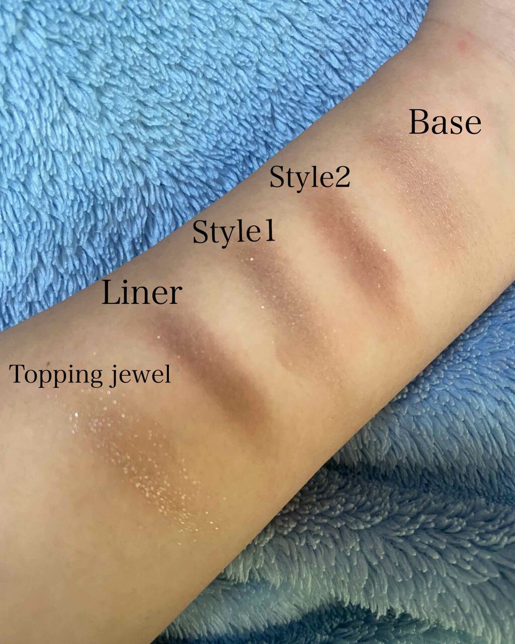 - ラメ・パールは控えめ、しっとり密着して高発色の5色アイシャドウ。1色は上からトッピングできるラメパウダー。ナチュラルスタイルと華やかスタイルを2パターン楽しめるカラーバリエーションです。