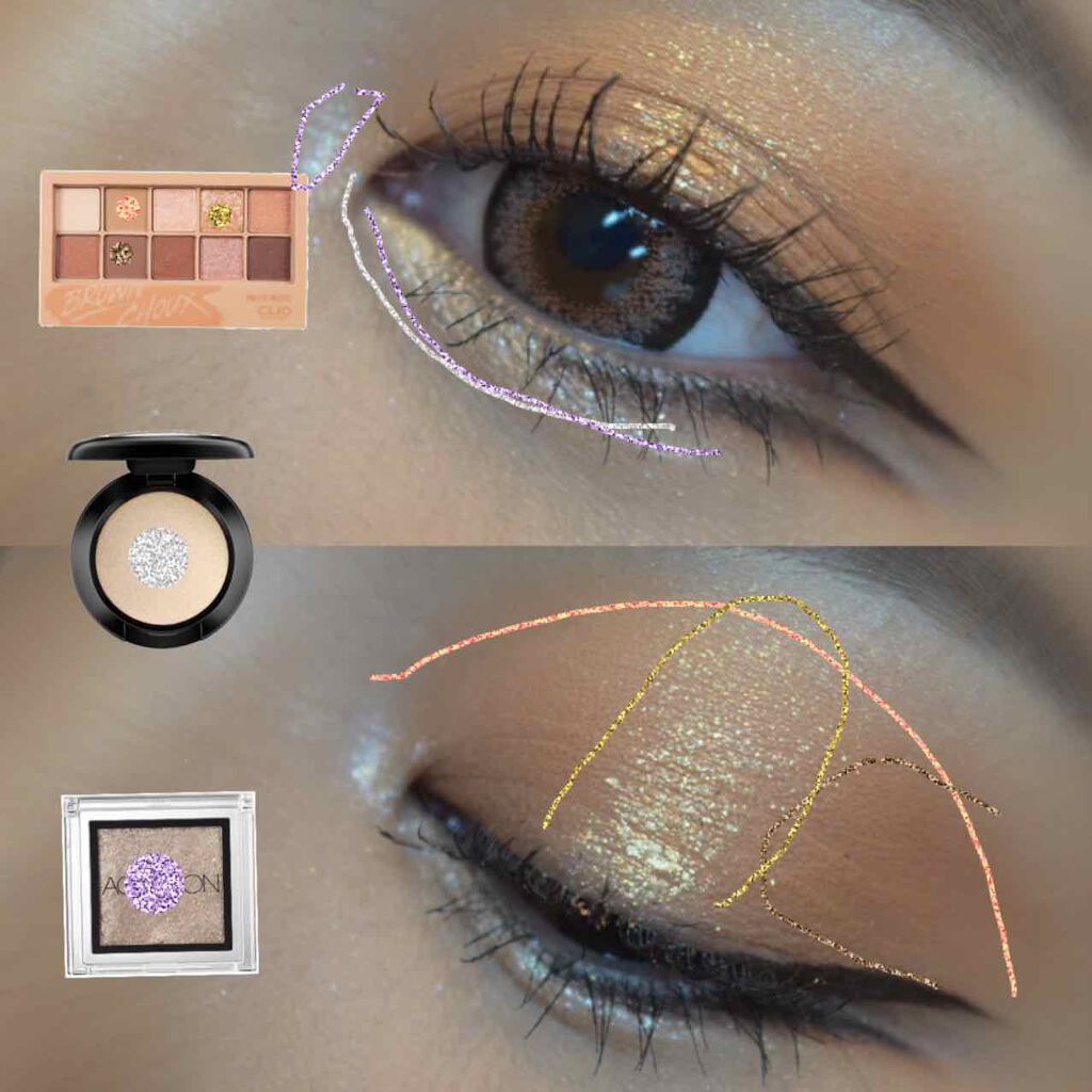 またまたzeesea様の🤲🏻✨..今日はゴールドメインで💗✨..ゴールドだけだと浮くかな?と思って赤っぽいラメを混ぜて塗ったらギャンカワ😭✨我ながらかわいすぎるーー🥺💗..アイラインは太めにして、今流行ってる?foxeyesっぽく🥺..目が盛...