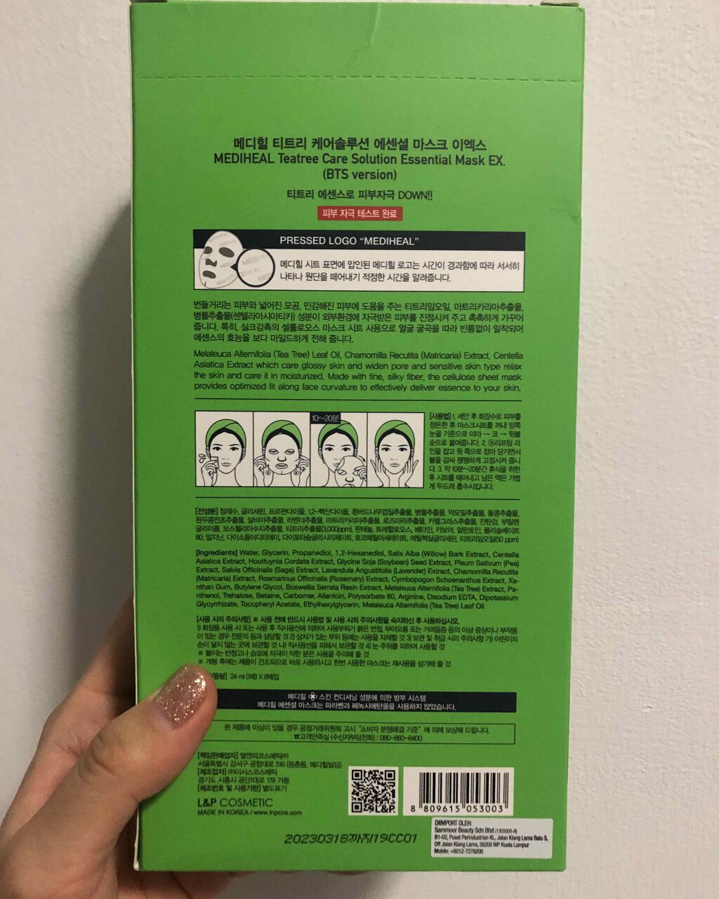 - <10枚入り> 水、BG、グリセリン、キサンタンガム、カルボマー、グリチルリチン酸2K、ティーツリー葉油、セージエキス、アルギニン、プロパンジオール、エチルヘキシルグリセリン、ツボクサエキス、ドクダミエキス、トレハロース、ダイズ種子エキス、ベタイン、酢酸トコフェロール、パンテノール、1,2-ヘキサンジオール、アラントイン、ローズマリーエキス、EDTA-2Na、セイヨウシロヤナギ樹皮エキス、ポリソルベート80、ボスウェリアセラタ樹脂エキス、エンドウエキス、ラベンダーエキス、カミツレエキス、レモングラスエキス、ティーツリーエキス <1枚> 水、BG、グリセリン、キサンタンガム、カルボマー、グリチルリチン酸2K、ティーツリー葉油、セージエキス、アルギニン、プロパンジオール、エチルヘキシルグリセリン、ツボクサエキス、ドクダミエキス、トレハロース、ダイズ種子エキス、ベタイン、酢酸トコフェロール、パンテノール、1,2-ヘキサンジオール、アラントイン、ローズマリーエキス、EDTA-2Na、セイヨウシロヤナギ樹皮エキス、ポリソルベート80、ボスウェリアセラタ樹脂エキス、エンドウエキス、ラベンダーエキス、カミツレエキス、レモングラスエキス、ティーツリーエキス