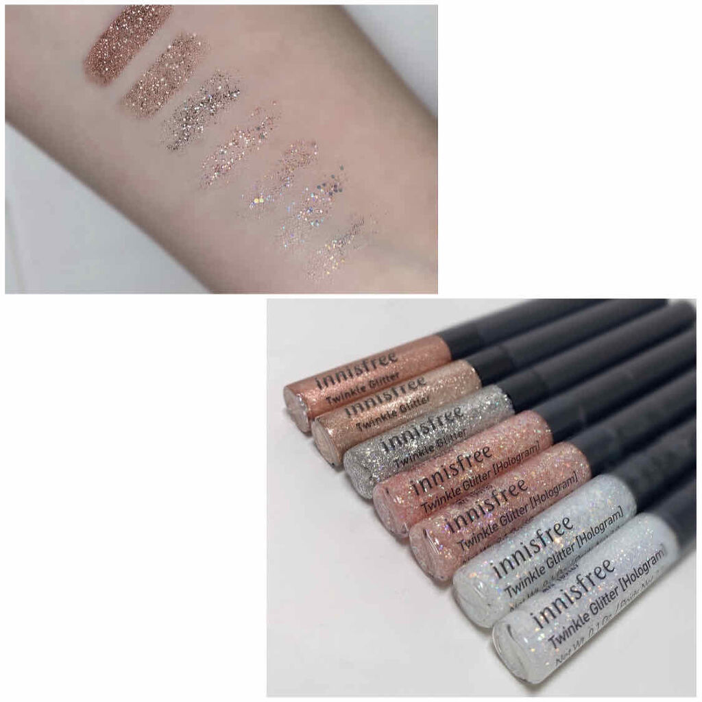 innisfreeのグリッター全色レビュー🌈✔️innisfreeトゥインクルグリッターホログラム大きめのラメが多いので、涙袋の下に少しのせてあげると、かわいいです!1号 星のきらきら月光他のより大粒のラメは入っていなく、ゴールドラメで光りま...