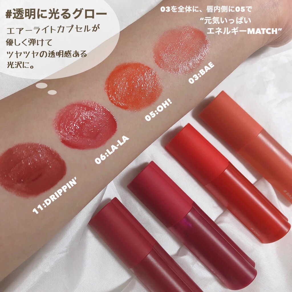 | 色味もとっても可愛い!本当に軽い質感で、ベタつくのが苦手な人にもオススメです! | 詳細を見る | ||