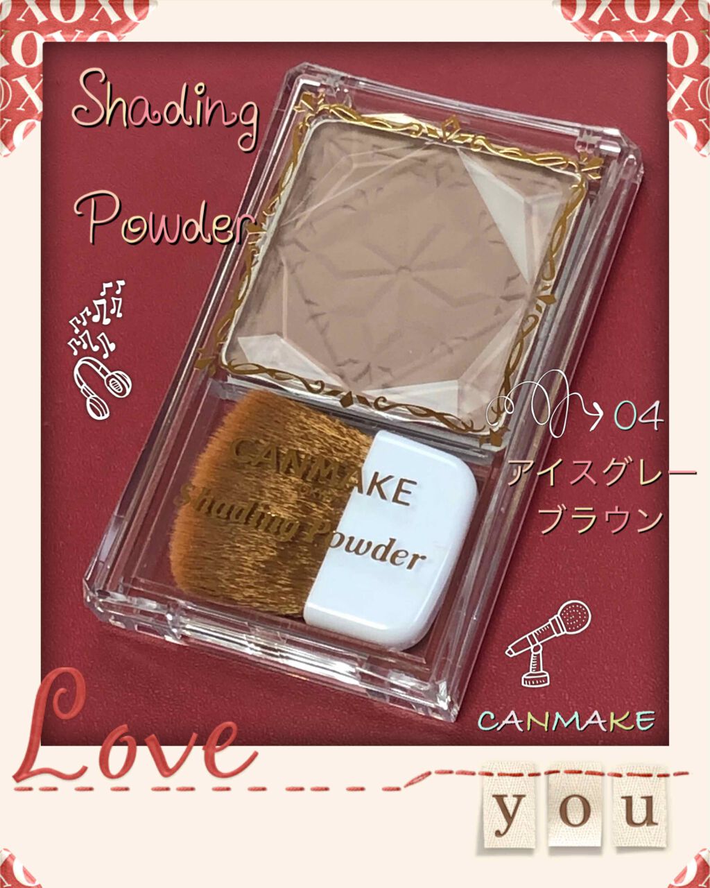 #キャンメイク#シェーディングパウダー04#アイスグレーブラウンほんのり色づく青みのあるグレー系ブラウンブルーベースさんや色白さんにオススメスウォッチは指でグリグリ塗った状態の色です。付属のブラシでスウォッチするとほぼ見えないぐらい薄付きです...