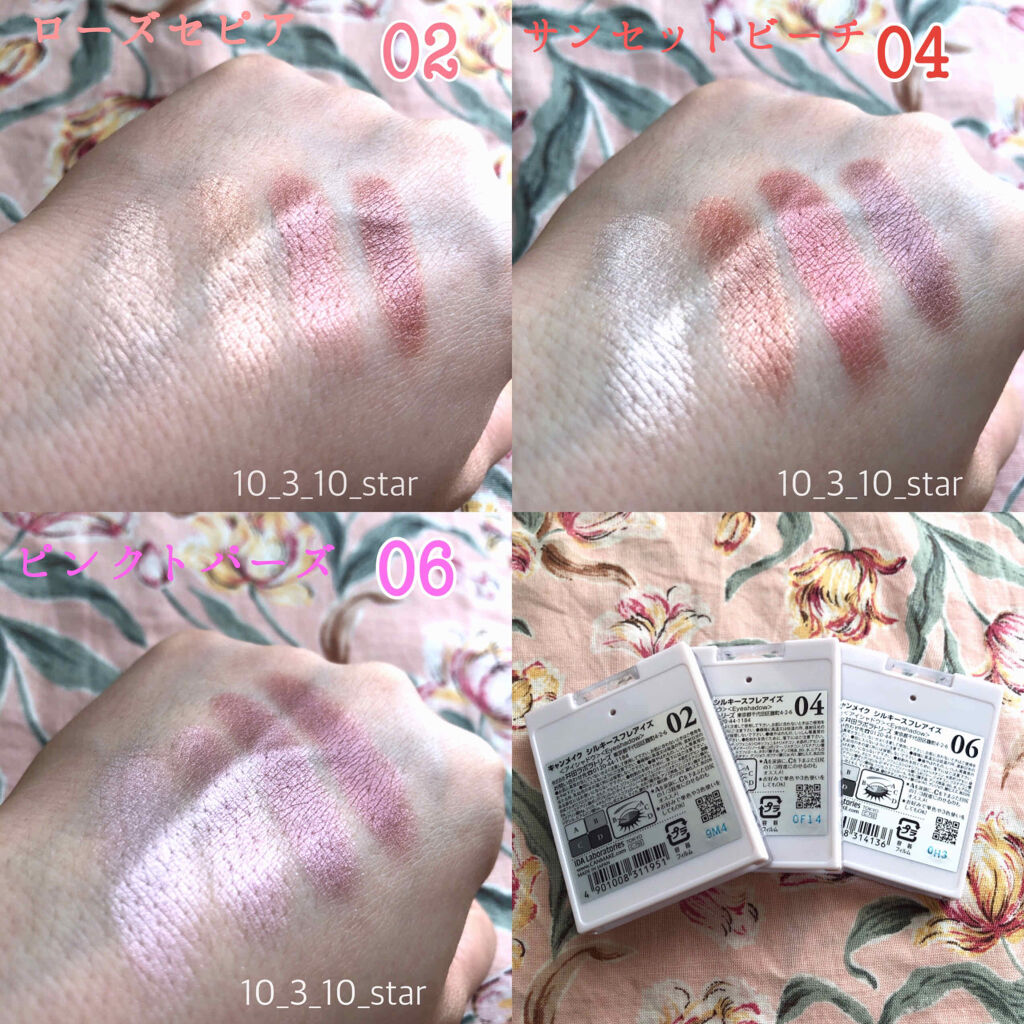 シルキースフレアイズ 通常タイプとマットタイプがあって どっちも大人可愛い透けパレット♡ しっとりとした質感だし これで1,000円以下はすごい… 04 サンセットデート オレンジがかったお洒落レッド ※今夏廃盤 🎨イエベ春、イエベ秋 10色もあるから・ピンク系・オレンジ系で 似た色比較も✨詳しくは画像を見てね!
