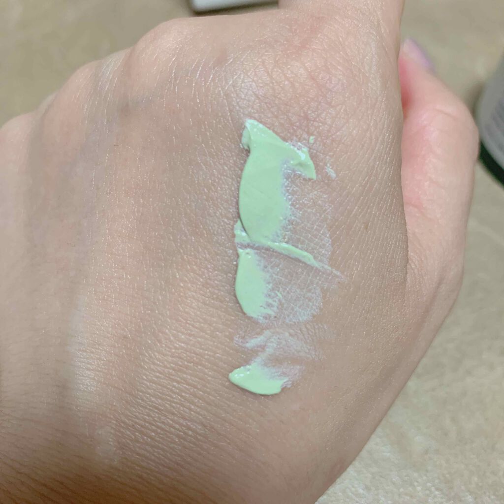 - 赤みをきちんとカバーするスキンケア兼用下地。緑色のクリームが肌でベージュ色に変化し、ニキビ跡やくすみをカバーします。
