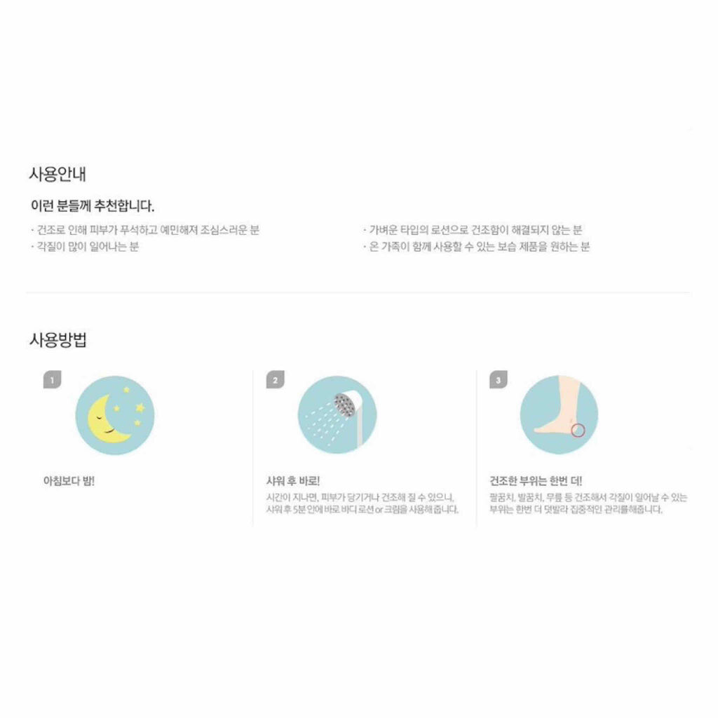 - ・独自開発の皮膚バリア技術MLEによって肌に素早く浸透*し、うるおい長時間キープ&肌バリアを保護 *角質層まで ・5つの無添加処方(パラベン、フェノキシエタノール、ミネラルオイル、色素、エタノール不使用) ・韓国の大手ドラックストアOlive Youngボディケア部門1位(2018年、2019年、2021年2月〜3月) ─マイルドなパウダーバニラの香り