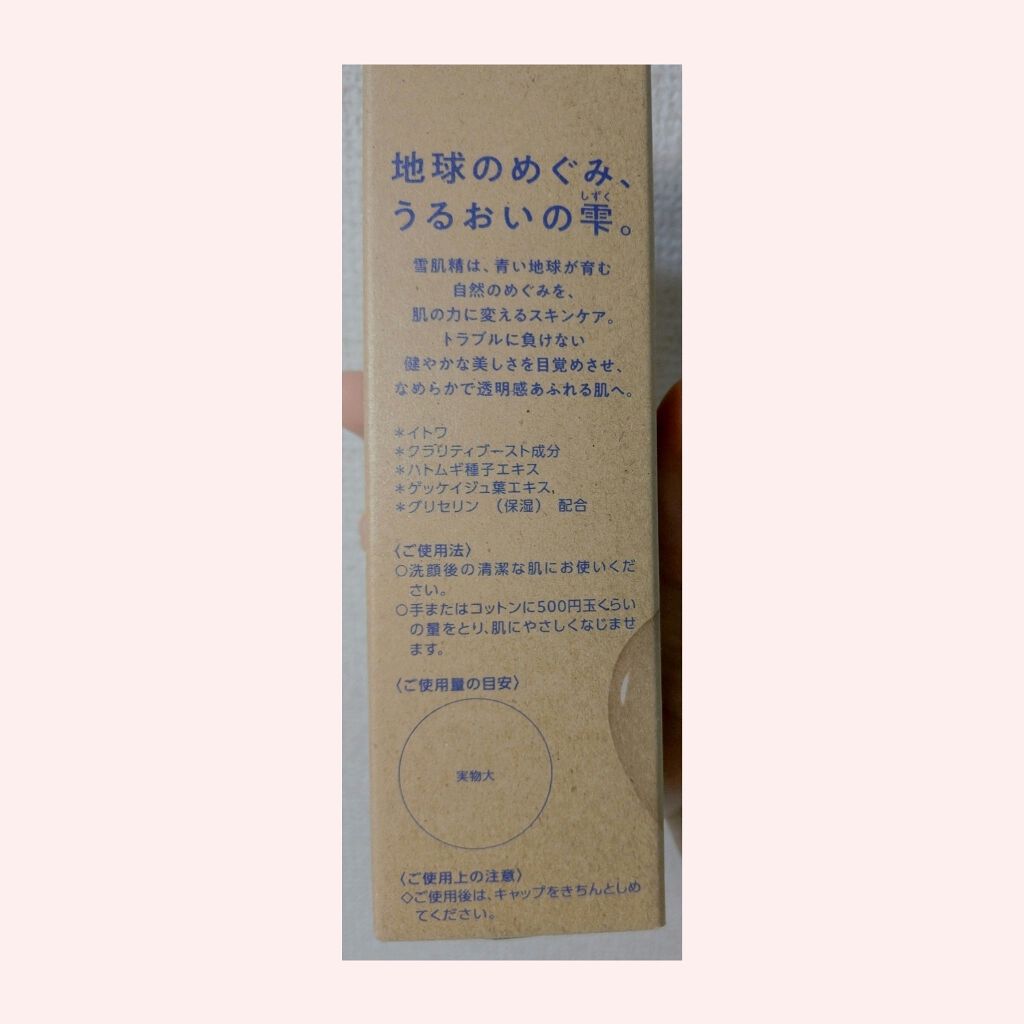 ブルーで雫みたいな形の蓋が特徴的な化粧水です。※写真忘れていました💦すみません。元々雪肌精は気になっていて、その中でも手が出しやすい価格だったので購入しました。白濁色で少しとろっとしたテクスチャーです。前はオルビスユードットの化粧水を使ってい...