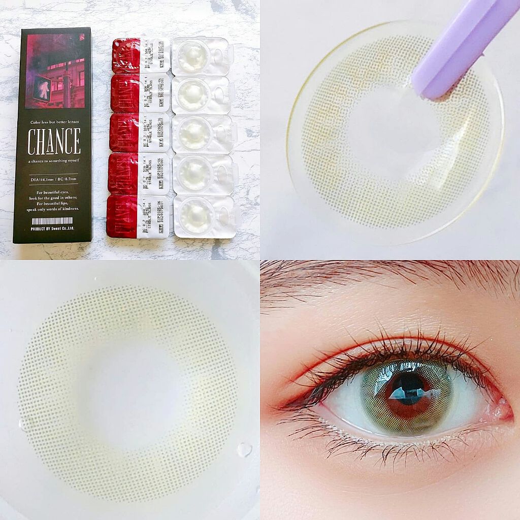 - デザイン・カラー・サイジング・フィッティング全てにこだわり抜いた「CHANCE 1DAY」。 今までのカラコンにはない自然でアンニュイなデザインと絶妙な彩色。さらに業界最高水準スペックを備えDebut。 色褪せる流行、残る個性。あなたの魅力を引き出し、運命を変えられるくらいのインパクトを届けたい。CHANCE(チャンス)を掴むきっかけをこのレンズで。 ■こだわり その(1):「生まれつきの瞳の様な自然さ」にこだわったレンズデザイン 「生まれつきの瞳の様な自然さ」にこだわる為には、デザイン・カラー・サイズの全てにおいて妥協することはできませんでした。 どんな瞳にも溶け込むデザインとカラー。大きすぎず、小さすぎない自然なサイズ。 それが叶った秘密は、極小ドットによるデザインとカラー、そしてDIA14.1mmというサイズ感が重要でした。 ■こだわり その(2):「国内カラコン最高水準のスペック」 瞳への負担を軽減する事にとにかくこだわりました。UVカット、うるおい成分配合(MPC)、なめらかエッジ。またパソコン・スマートフォン等の液晶画面から発生しているブルーライトを軽減するイエロー色素を国内販売のカラーコンタクトレンズで初めて採用致しました。 カラーコンタクトレンズの不適正使用による眼障害の危険性等などがあります。 ●コンタクトレンズは高度管理医療機器です。不十分な洗浄・消毒など不適切なケアや、長時間・交換期間を超えた装用により、アレルギー性結膜炎、角膜感染症、角膜潰瘍等の重篤な眼障害が発生する危険性があります ●ご使用前に取扱説明書を確認してください 使用上の留意事項 ●眼科医院等を受診してからお求めください ●眼に異常を感じたら直ちにレンズ使用を中止し、お近くの眼科等で診察を受けてください ●医師の指示にしたがってご使用ください ●コンタクトレンズを装用する場合、自覚症状がなくても、眼科医院等での定期検査を受けてください ●レンズに不具合がある場合は使用しないでください