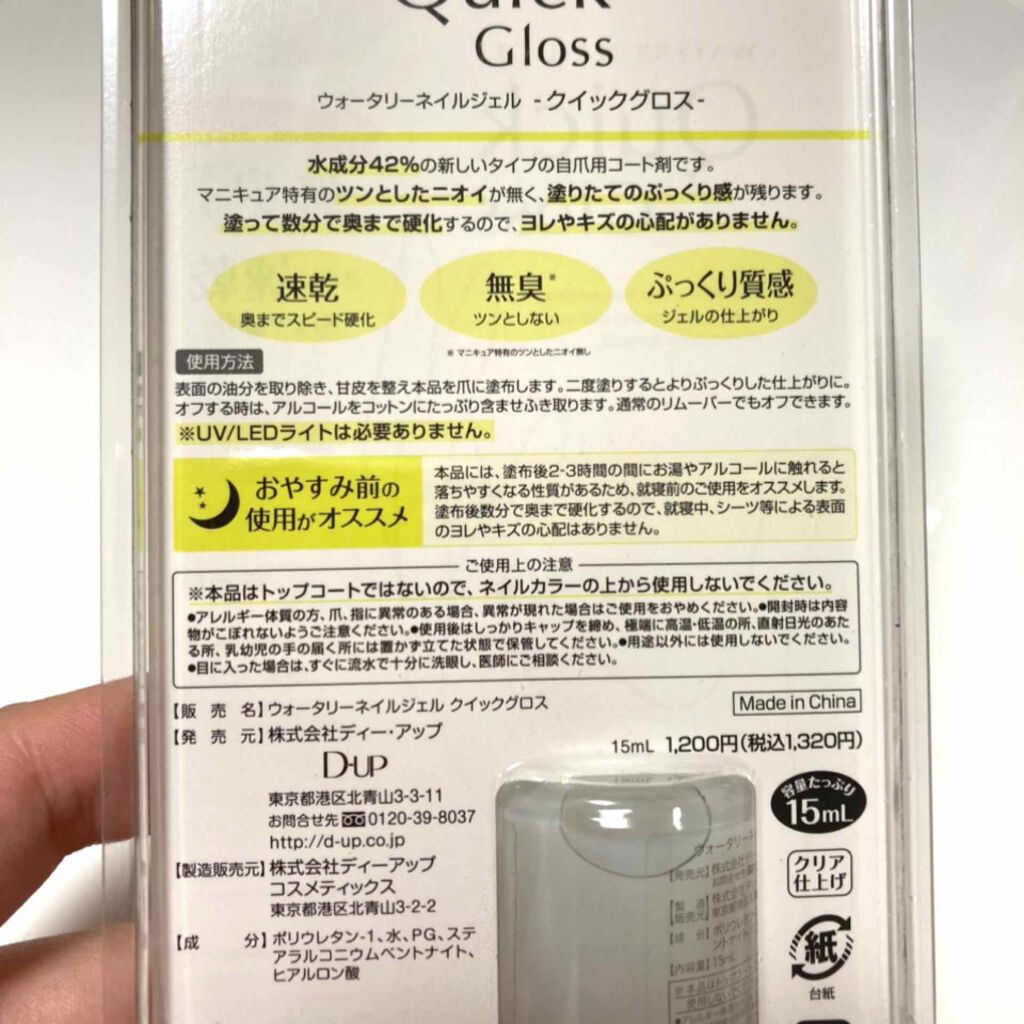 商品詳細情報D-UP ウォータリーネイルジェル クイックグロス