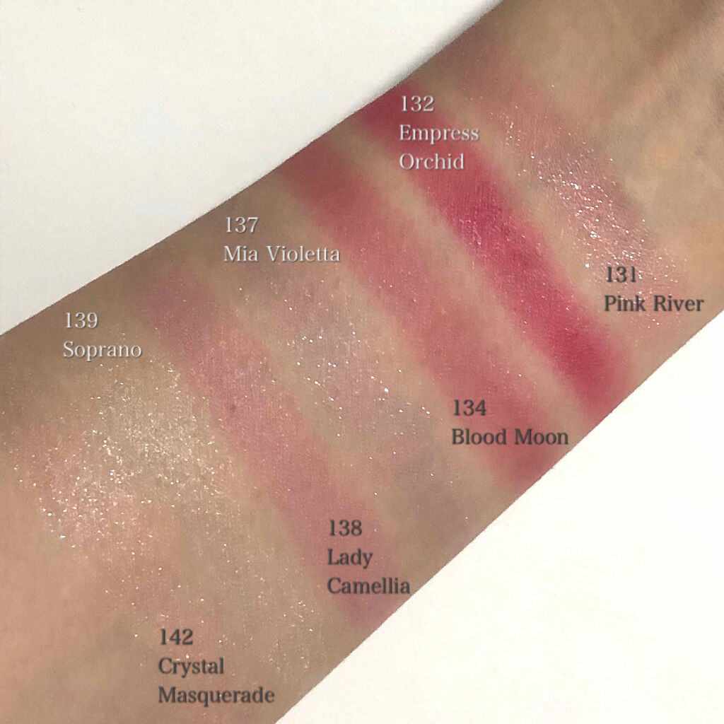 使用感としてはクリーミーなタッチで するする〜っと滑らかにかけます🎶 それなのに少しおくとピタッと密着して 指で擦っただけでは落ちないしよれない😳❗️ R1 KISS FROM A ROSEは ペタルピンクカラー✨ 購入した4色の中で1番可愛らしいカラー💓 シルバーラメがたっぷりで透明感があるなぁという感じ😊 ピンクパールも煌めいて本当に可愛いカラー🥰 R2 WILD ROSEは シャンパンピンクカラー✨ ベージュ寄りのカラーで、ピンク感が少なめなので 肌馴染みが良い🙆♀️ 涙袋にのせても可愛いカラーです💓 使いやすいカラーであまり使う人を選ばないカラーかなと思います❣️ R3 STRIKE A ROSEは テラコッタローズカラー✨ ややオレンジみのあるカラーで カジュアルな感じのメイクにぴったりなカラー😊 チラチラと煌めくラメが可愛いです💕 R4 BED OF ROSESは ローズピンクカラー💓 くすみ感のあるカラーで、ピンクやブルーのパールがたっぷり😍 とってもおしゃれなカラー❣️