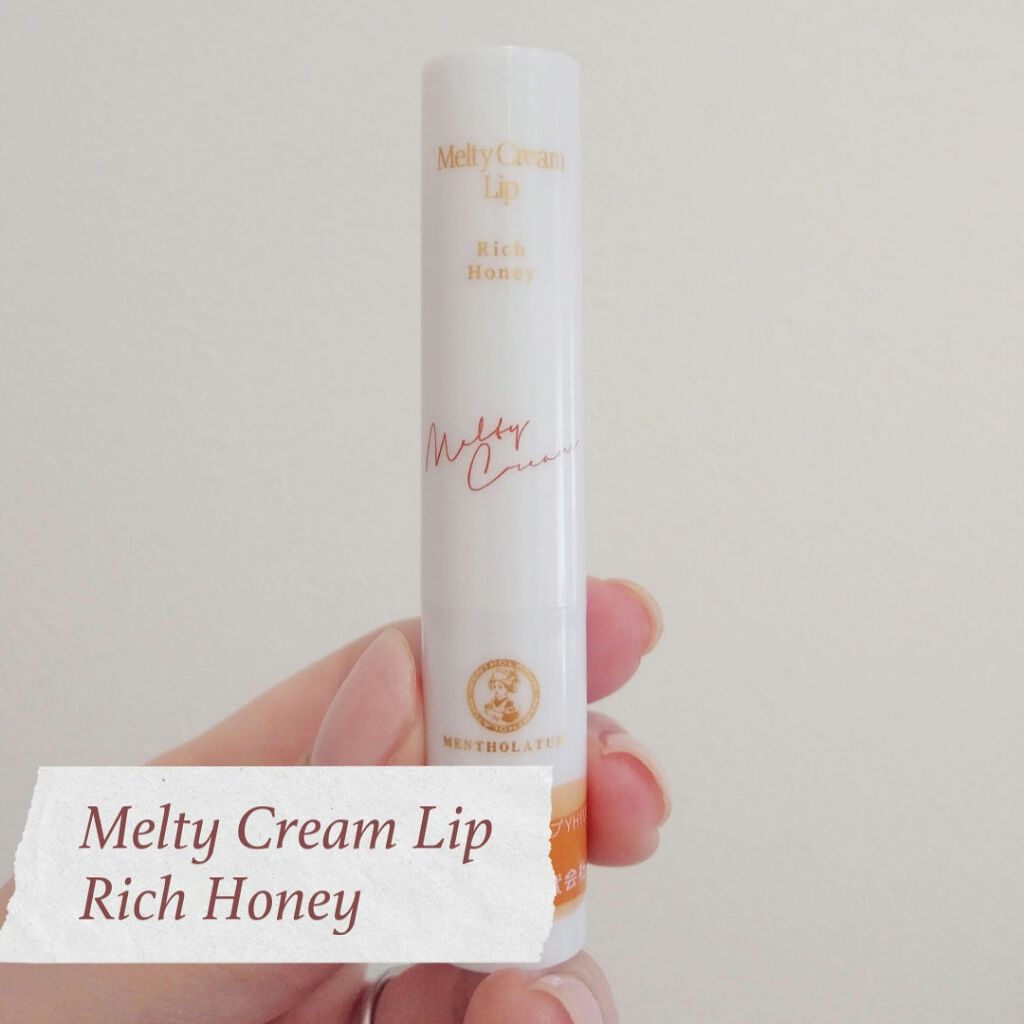 唇や空気中の水分と反応してうるおいを抱え込み、クリームに変わる「モイストバンク技術」を採用。 体温でとろけるので塗り心地が良いです! 少しツヤが出るのでリップの下地にもおすすめ。 リッチハニーの香りは強すぎず、ふんわり甘い蜂蜜の香りで癒されます🍯