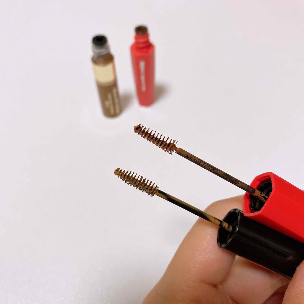 - 塗り残しゼロ!1本1本ムラなく仕上がる極細*ブラシの眉マスカラ ■コントロールしやすい極細*ブラシ 小回りが利いて1本1本ムラなくキレイに塗れる極細*ブラシを採用。 多様な毛質、生え方に対応し、塗り残しのない均一な仕上がりを叶えます。 ■地肌に付きにくいブラシ設計 眉毛1本1本の根元からキレイに色づくのに、地肌に付きにくいコンパクトなブラシ設計で、眉尻や、眉毛が密集する眉頭も、ムラ・束感なく塗ることができます。 ■高発色なのに薄膜仕上げ!眉色を1トーンUP 高発色で眉毛の黒色をしっかりカバーするのに薄膜に仕上がり、1トーンUPした眉色であかぬけた印象を演出します。 ■長時間落ちにくいのに、お湯で簡単オフ 汗・水・皮脂・こすれに強く、長時間落ちにくい処方です。 フィルムタイプなので、ぬるま湯でスルッと簡単に落とせます。 ■美容液成分パンテノール(眉毛保護成分)配合 水溶性ビタミンのパンテノール(眉毛保護成分)が眉毛をやさしくケアし、眉毛にツヤ・ハリを与えます。 *ヘビーローテーション内