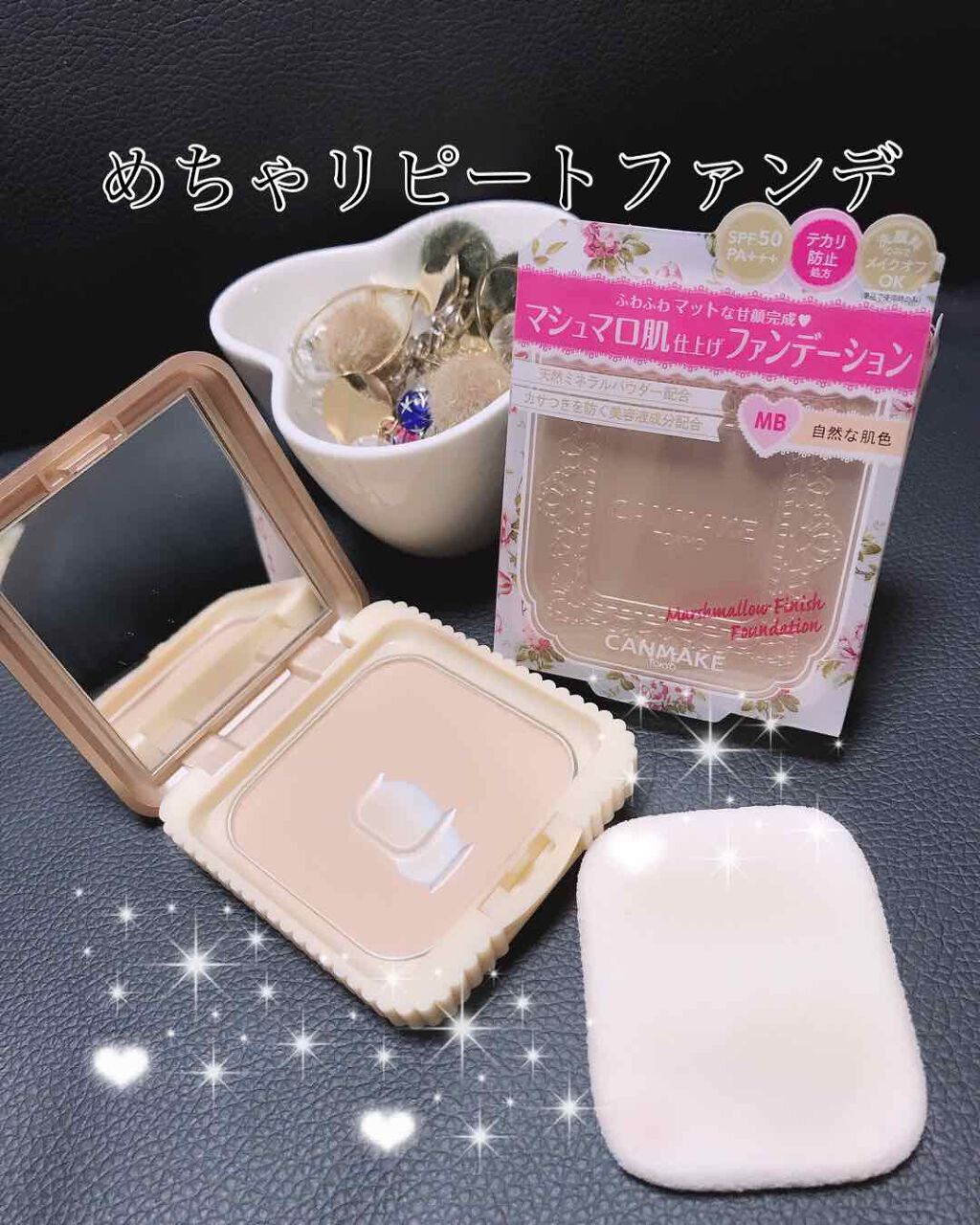 キャンメイクマシュマロ肌仕上げファンデーション「MB」1番濃い肌色です😊 マット仕上がりでサラサラなので大好き😘 わたしの肌には合ってるので鬼リピです😘 SPF50 テカリ防止処方 洗顔料でメイクオフ ミラー・スポンジ付き 水なし専用 毛穴を目立ちにくくする