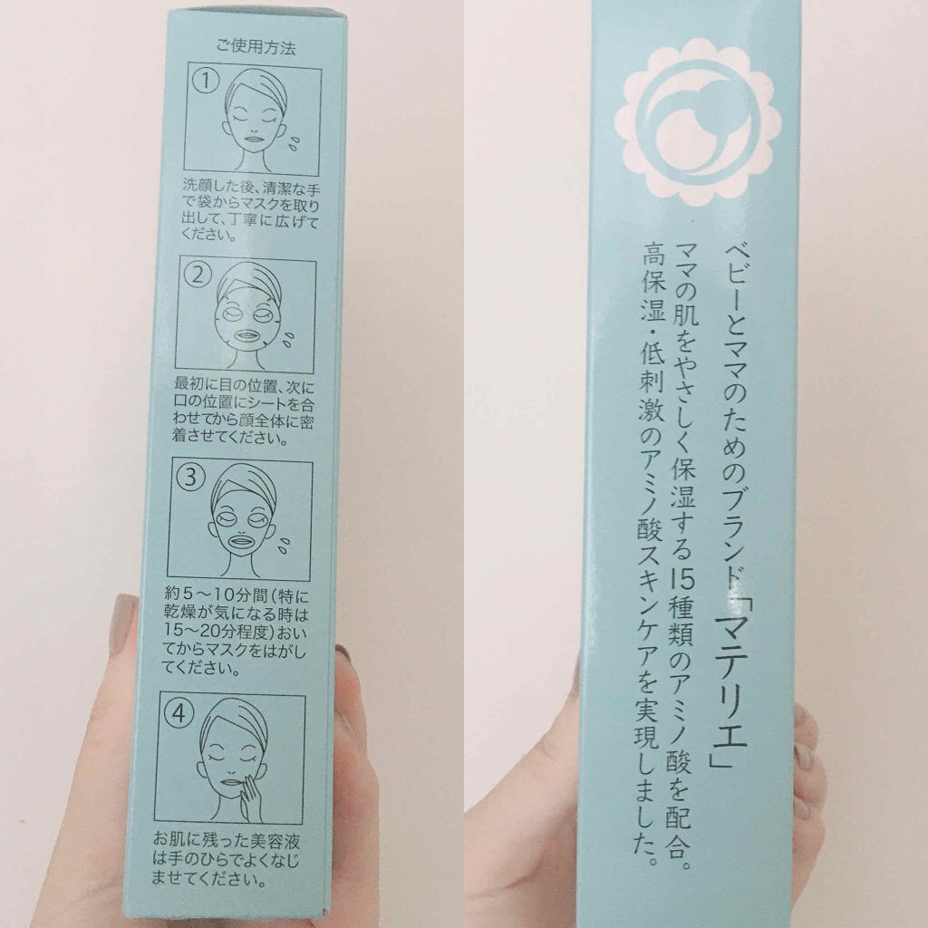~~~~~~~~~~~~~materie5枚入り¥1,164(税抜)~~~~~~~~~~~~~こちらは・ベビーアミノ酸15種・植物由来のオリーブオイルが入っており、しっかり保湿してくれるアイテムです!妊娠中・産後ママもお肌に優しくつかえるフェ...