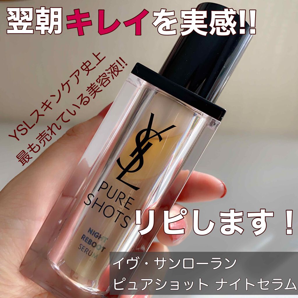 - YSL No.1美容液が進化。 翌朝出会う。8時間熟睡の美肌。 先進技術により、パワフルなボタニカルを約20倍*配合。 深夜24時から始まる、たったの1時間の「肌のピークタイム」に着目し、まるで8時間熟睡したように。 なめらかで透明感のある毛穴レスな肌印象へ。 *ピュアショット ナイトセラムとの比較 ※ 新製品「ピュアショット ナイト リチャージセラム」と旧製品「ピュアショット ナイトセラム」はサイズ規格が異なります。新製品のレフィルは旧製品のケースに入りませんので、ご留意ください。