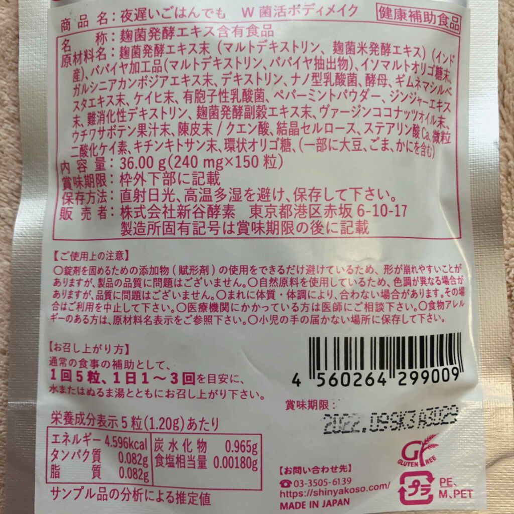 商品詳細情報新谷酵素 夜遅いごはんでも W菌活ボディメイク
