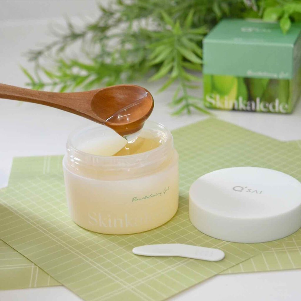 【リバイタライジング濃密ジェル】byskinkalede『食べる美容液』と言われるケール🥬スキンケアで肌からも摂り入れています✨一般的な化粧品の主成分である"水"を一滴も使わず、肌本来の潤う力を取り戻す"ケール葉エキス"や浸透度を上げるために...