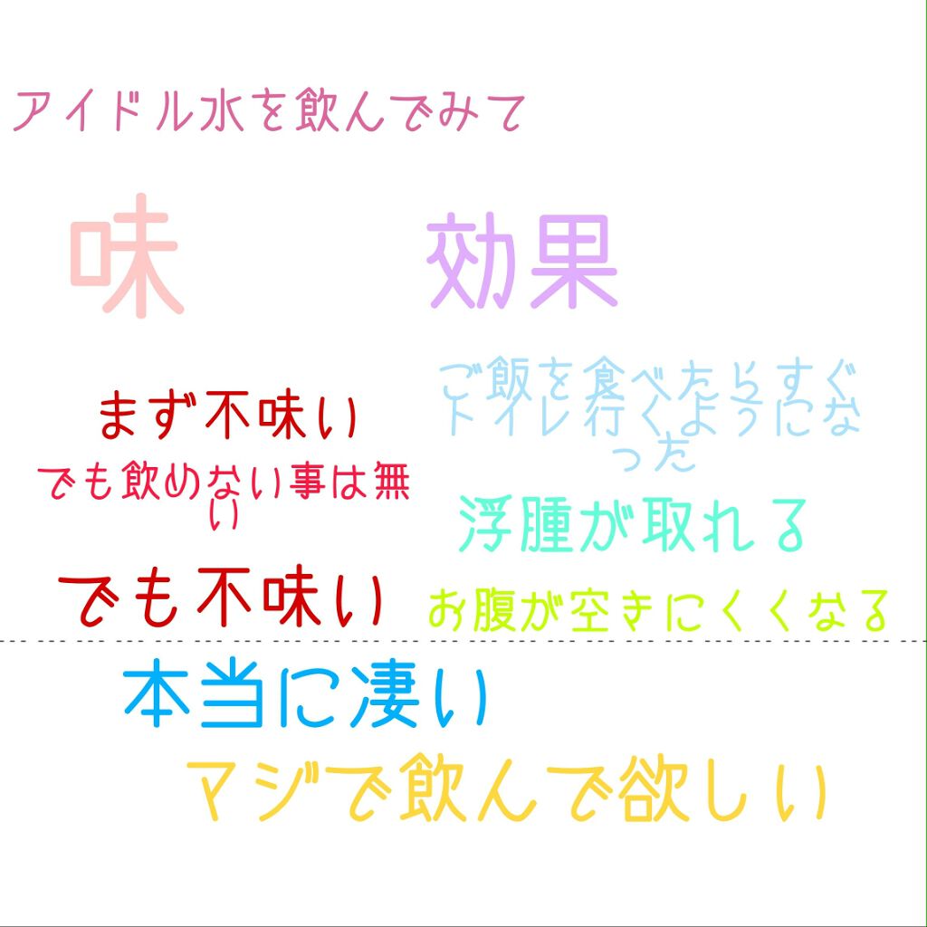 皆さんこんにちは半顔ちゃんです今回は私が本当に痩せたアイドル水について話して行きたいと思います。………………………………………………………………………まずアイドル水を飲んでみて味は正直不味いですでも飲めない事は無い不味さ?ですでも効果が凄いで...