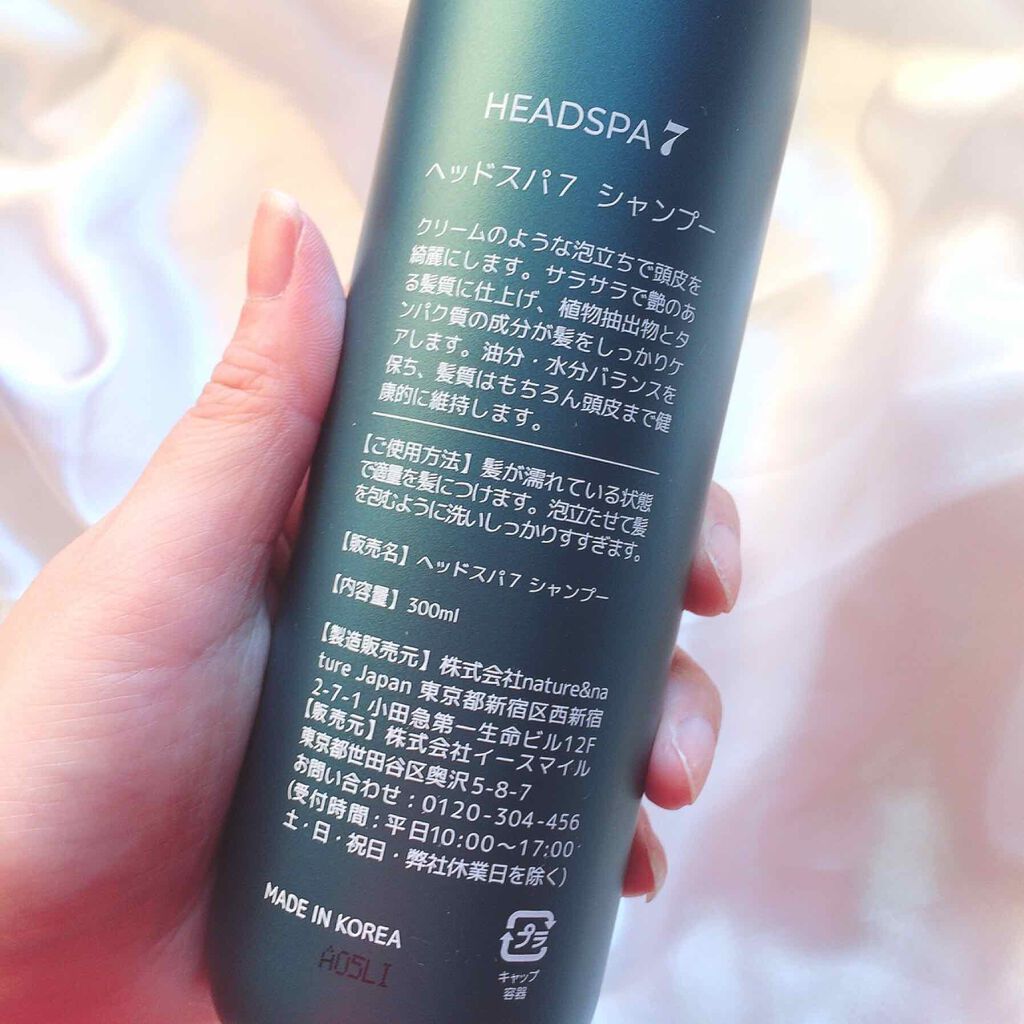 - 美容大国韓国発!全世界で700万本突破! 7秒で激変体験始めてみませんか? シャンプーだけで高まる、「ツヤ」と「ハリ」。指通りなめらかな髪へ。 「ヘッドスパセブン シャンプー」であなたの 頭皮にパワーを! 髪にしなやかさを! ツヤめきとボリューム感に心ときめく! 5つの人気のヒミツ ・低刺激なのにしっかりとした洗いごたえ ・檜のチカラで頭皮に活力を! ・自然の香り。まるで森林浴! ・3種のタンパク質でダメージヘアケア 。贅沢配合!29種の植物由来エキスで頭皮と髪にアプローチ。