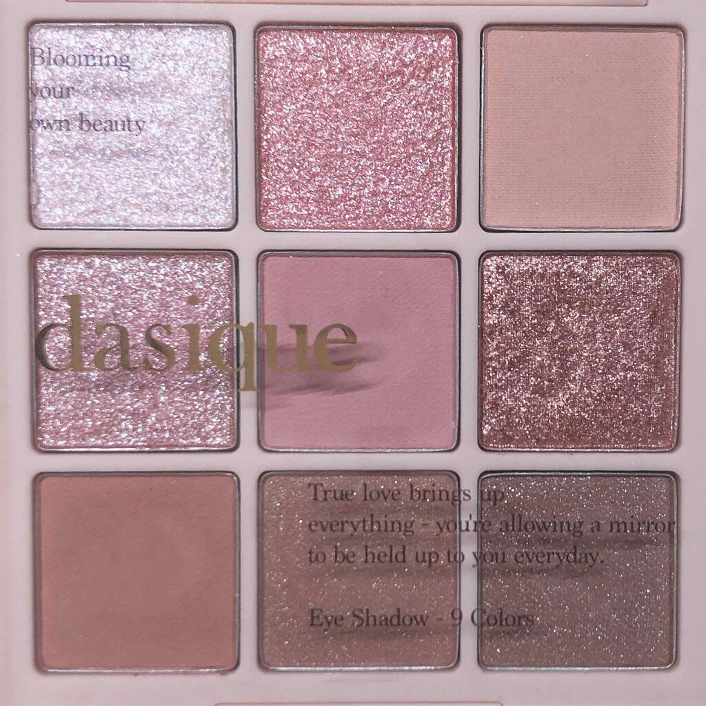 dasiqueシャドウパレット02ローズペタル¥4,180右下の締め色と右上のベースカラーのみでメイク。(普段はアイライナーだけ引きますが今回はマスカラもアイライナーもなし)色が足りない!!と思った日は左下の色を涙袋に足してます〜一見濃そうな...