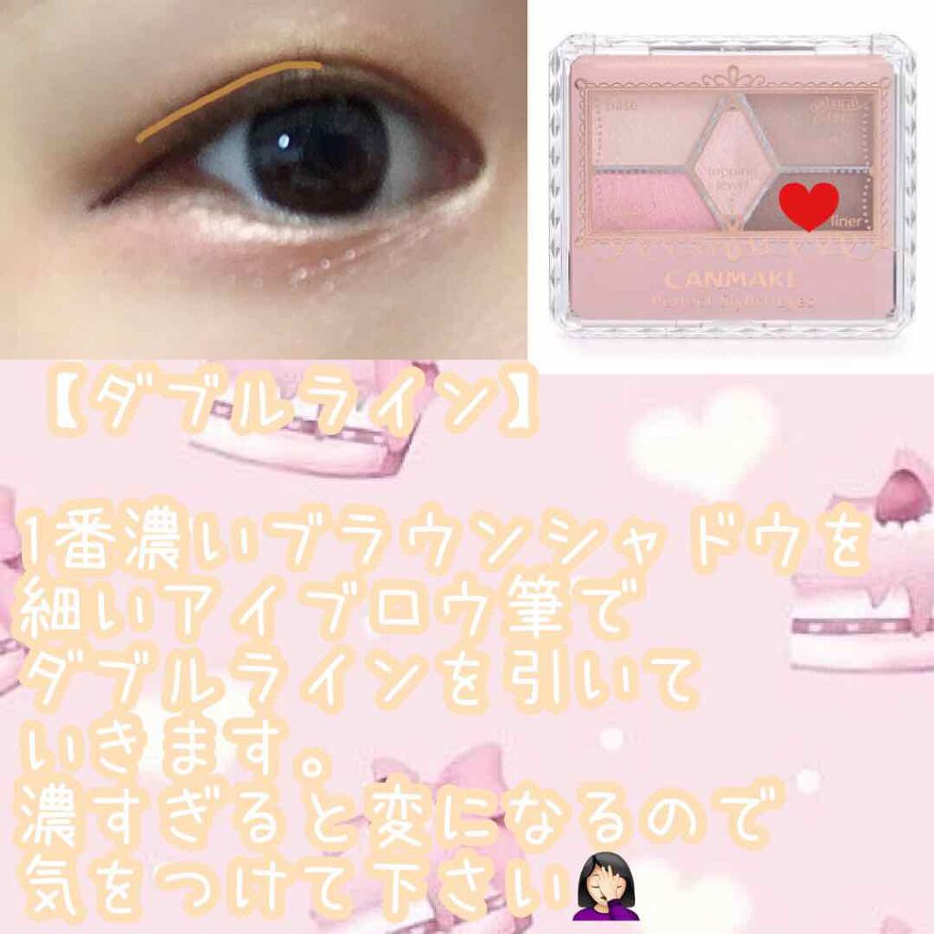 【毎日メイク】私の量産型風な毎日メイクを紹介します⸜❤︎⸝今回はアイメイク編です💓最初にPopteen2020年9月号の18色パレットを使います!付録でこの発色、カラバリは神。最初はベース💭マットアイシャドウを画像の様に塗ります✨次に商品に...