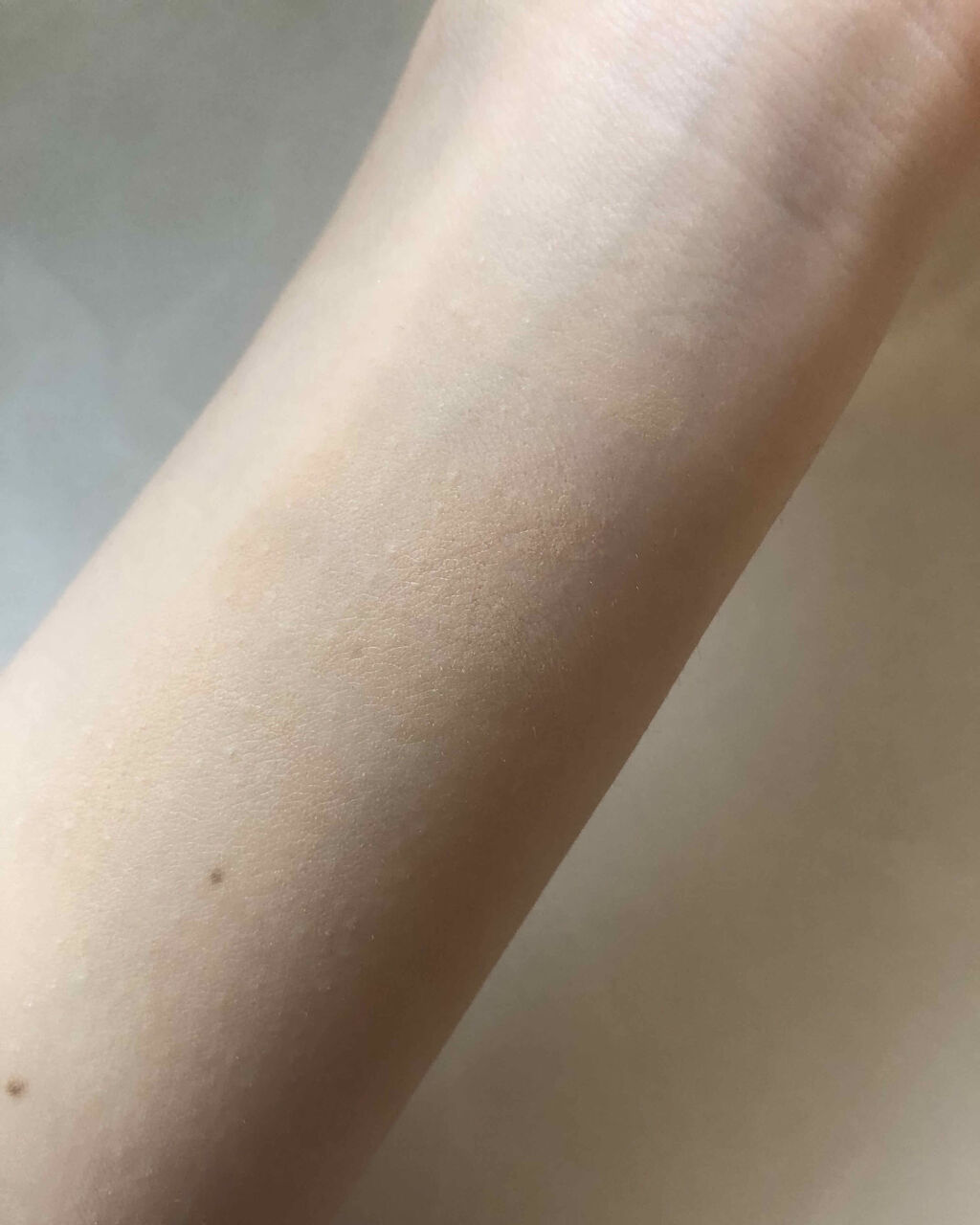 実際に手に乗せてみるのちょっと白っぽいかなと一瞬思うけど、伸ばすと綺麗な艶が! 自然な艶が上品にしてくれる最高な下地! 変性アルコールはエタノールに入るそうです もし気になる方がいたら絶対試した方がいいと思います!