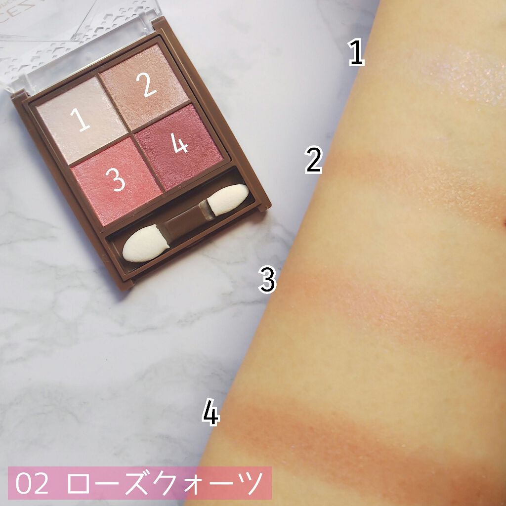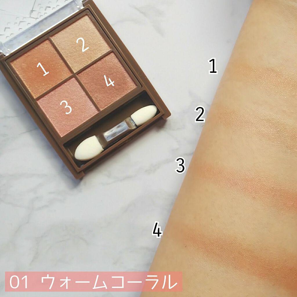 サテンのような質感が美しい、パールリッチな4色アイシャドウ。 重ねても濁りにくいクリアベール処方で透け感あるニュアンスカラーが楽しめます。 透け感がとても品良く、左上のラメも細かいから大人でも使いやすいと思います。透け感があると発色を調整できて、盛り耐性がない私でもいい感じに使えました。 コスメの移り変わりがはやすぎて、新作が出るのが楽しみな反面、廃盤になるものとのお別れが寂しく感じます。