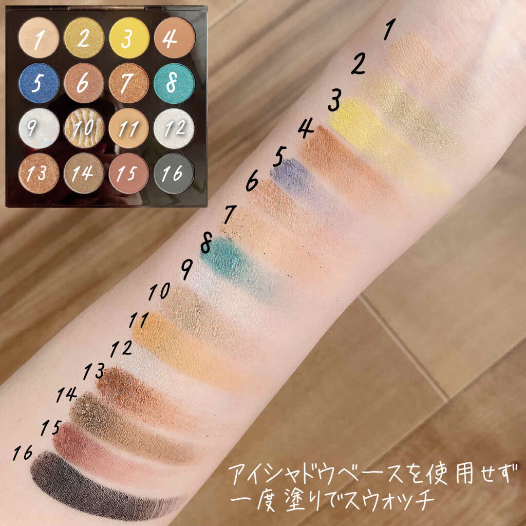 ごちゃごちゃした配色が見てて楽しいアイシャドウだけど、普段使いには厳しいよね〜。 発色がめちゃくちゃ良くてマットカラーは完全見たまんま発色。涼しげな色が揃ってるかと思いきや赤だったり青だったり茶色だったり… ラメは涼しげで濡れたような輝きだからどの色使ってメイクしても使いやすい。