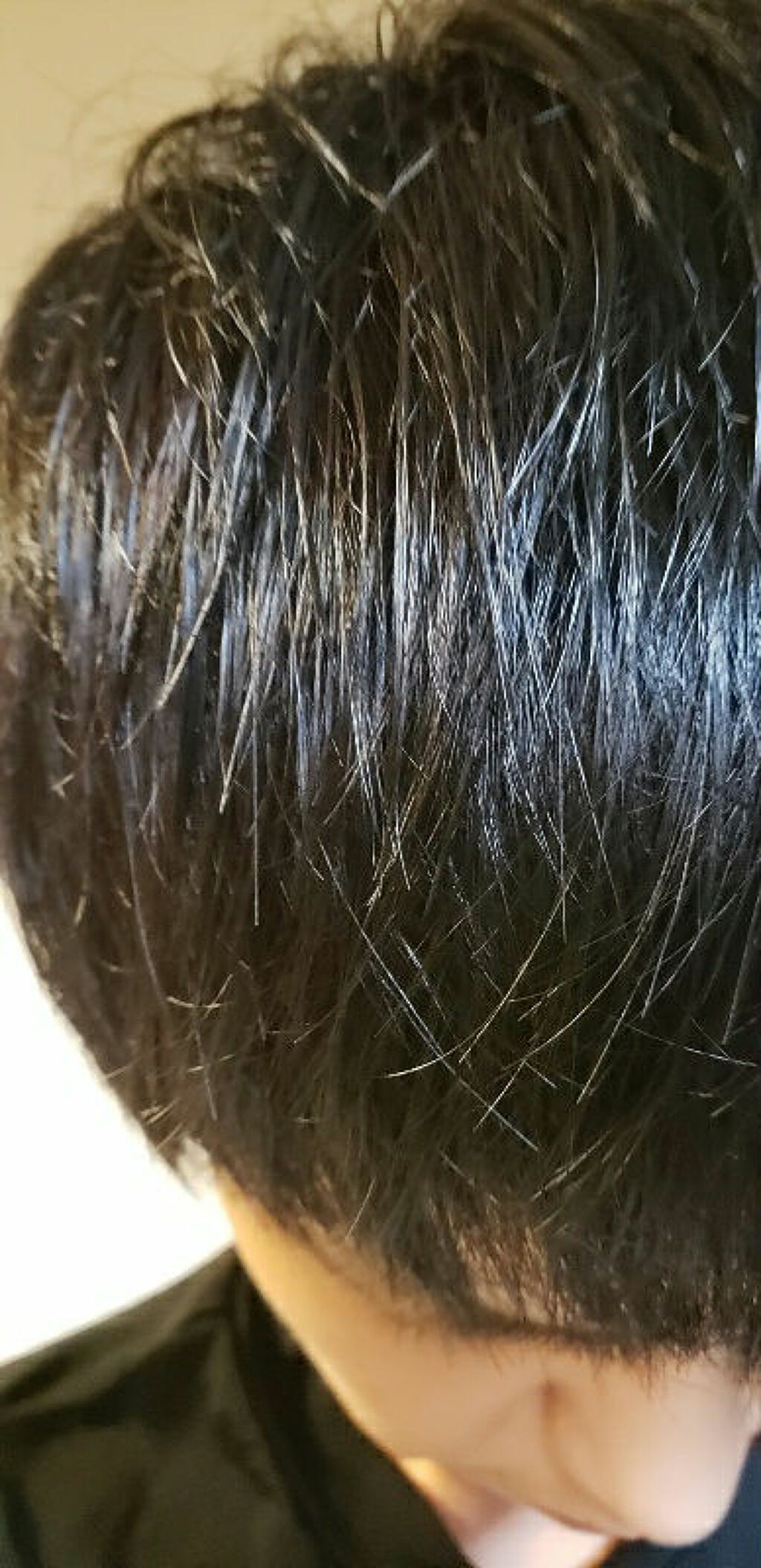 こんな感じで手に取ること3回。ピンポン玉三個分位使いました。試すまで本当に買おうか迷っていた商品で今回縁があり当選させていただき大変嬉しいです。髪は、もう白髪染めと毛染めで混ざりあいなんとも中途半端な感じなのです。頭頂部です。ちらほらとありま...