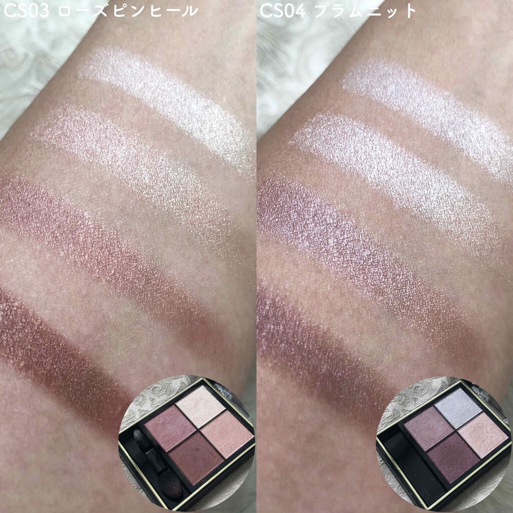 - <CS01-CS05共通> トリエチルヘキサノイン、 リンゴ酸ジイソステアリル、 メタクリル酸メチルクロスポリマー、 イソステアリン酸水添ヒマシ油、 ラウリン酸亜鉛、 スクワラン、 トコフェロール、 メチルパラベン、 (+/-) グンジョウ、 コンジョウ、 タルク、 ホウケイ酸(Ca/Al)、 マイカ、 金、 銀、 酸化チタン、 酸化鉄、 水酸化Al、 赤202、 赤226 <CS07> トリエチルヘキサノイン、 リンゴ酸ジイソステアリル、 メタクリル酸メチルクロスポリマー、 イソステアリン酸水添ヒマシ油、 ラウリン酸亜鉛、 スクワラン、 トコフェロール、 メチルパラベン、 グンジョウ、 タルク、 ホウケイ酸(Ca/Al)、 マイカ、 金、 銀、 酸化チタン、 酸化鉄、 赤202、 赤226 <CS09> トリエチルヘキサノイン、リンゴ酸ジイソステアリル、メタクリル酸メチルクロスポリマー、イソステアリン酸水添ヒマシ油、ラウリン酸亜鉛、スクワラン、トコフェロール、メチルパラベン、(+/-)グンジョウ、コンジョウ、タルク、ホウケイ酸(Ca/Al)、マイカ、金、銀、酸化チタン、酸化鉄、赤202、赤226 <CS10> トリエチルヘキサノイン、リンゴ酸ジイソステアリル、メタクリル酸メチルクロスポリマー、イソステアリン酸水添ヒマシ油、ラウリン酸亜鉛、スクワラン、トコフェロール、メチルパラベン、(+/-)グンジョウ、コンジョウ、タルク、ホウケイ酸(Ca/Al)、マイカ、金、銀、酸化チタン、酸化鉄、赤202、赤226 <CS11> トリエチルヘキサノイン、リンゴ酸ジイソステアリル、メタクリル酸メチルクロスポリマー、イソステアリン酸水添ヒマシ油、ラウリン酸亜鉛、スクワラン、トコフェロール、メチルパラベン、グンジョウ、シリカ、タルク、ホウケイ酸(Ca/Al)、マイカ、金、銀、酸化スズ、酸化チタン、酸化鉄、赤226 <CS14> トリエチルヘキサノイン、 リンゴ酸ジイソステアリル、 メタクリル酸メチルクロスポリマー、 イソステアリン酸水添ヒマシ油、 ラウリン酸亜鉛、 スクワラン、 トコフェロール、 メチルパラベン、 グンジョウ、 シリカ、 タルク、 ホウケイ酸(Ca/Al)、 マイカ、 金、 銀、 酸化スズ、 酸化チタン、 酸化鉄、 赤202、 赤226 <CS16> トリエチルヘキサノイン、リンゴ酸ジイソステアリル、メタクリル酸メチルクロスポリマー、イソステアリン酸水添ヒマシ油、ラウリン酸亜鉛、スクワラン、トコフェロール、メチルパラベン、タルク、ホウケイ酸(Ca/Al)、マイカ、金、銀、酸化チタン、酸化鉄、赤202、赤226 <CX01-CX06共通> トリエチルヘキサノイン、リンゴ酸ジイソステアリル、イソステアリン酸水添ヒマシ油、ラウリン酸亜鉛、ポリグリセリル-3ポリジメチルシロキシエチルジメチコン、スクワラン、トコフェロール、酢酸セルロース、メチルパラベン、(+/-)グンジョウ、シリカ、タルク、ホウケイ酸(Ca/Al)、マイカ、金、銀、酸化スズ、酸化チタン、酸化鉄、水酸化Al、赤202、赤226 <CX07> トリエチルヘキサノイン、リンゴ酸ジイソステアリル、イソステアリン酸水添ヒマシ油、ポリグリセリル-3ポリジメチルシロキシエチルジメチコン、ラウリン酸亜鉛、スクワラン、トコフェロール、酢酸セルロース、メチルパラベン、グンジョウ、タルク、ホウケイ酸(Ca/Al)、マイカ、金、銀、酸化チタン、酸化鉄、水酸化Al、赤202、赤226 <CX08> トリエチルヘキサノイン、リンゴ酸ジイソステアリル、イソステアリン酸水添ヒマシ油、ラウリン酸亜鉛、ポリグリセリル-3ポリジメチルシロキシエチルジメチコン、スクワラン、トコフェロール、酢酸セルロース、メチルパラベン、グンジョウ、シリカ、タルク、ホウケイ酸(Ca/Al)、マイカ、金、銀、酸化スズ、酸化チタン、酸化鉄、水酸化Al、赤226