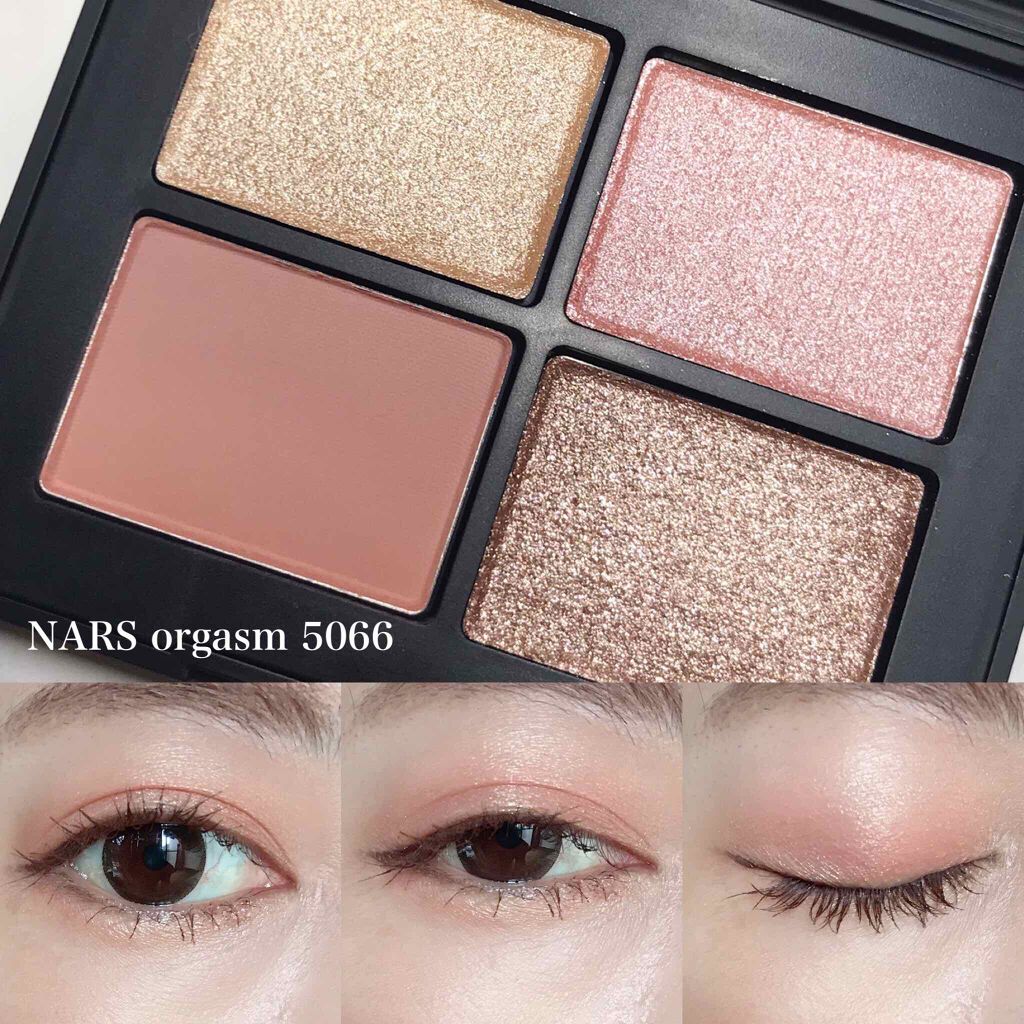 🐈⬛NARSクワッドアイシャドー04065🐾パケ買いしたけどこれを使えばオレンジメイクが好きになる。パープルラメがめっちゃいい仕事する。①左下オレンジをアイホール、下まぶた②右下ブラウンを二重幅③右上オレンジラメを目頭と目尻側に重ねる④左上...