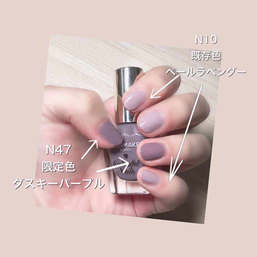 CANMAKEカラフルネイルズ N26 レディカーキ 薄めのカーキカラー🌱 冬以外ならどの季節にも使いやすいカラーです! N55 チャイティーラテ 新色の優しい絶妙なブラウン🤎 暖かさのあるカフェ系ブラウンで、秋っぼさ満点! N45 アールグレイ これは激推ししたい大好きなカラーです! アールグレイを擬態化した色っ!っていう感じで 上品な可愛さです♡ N47 ダスキーパープル これも大好きなカラー!! シアーな紫で、ブドウ🍇とかを連想させる秋カラー♡ N10 ペールラベンダー 優しいカラーで誰でも使いやすい! 女性っぽさが増し増しになる 上品なラベンダーカラーです!! N16 ココア 優しいココアカラー☕️ 秋冬に使いたいほっこりカラーで、温かみを感じます〜